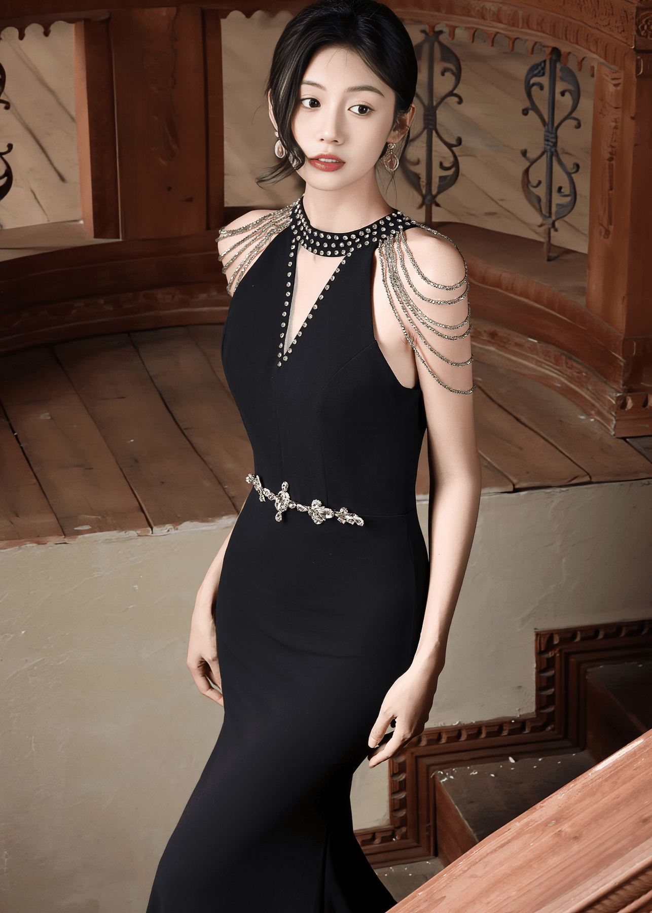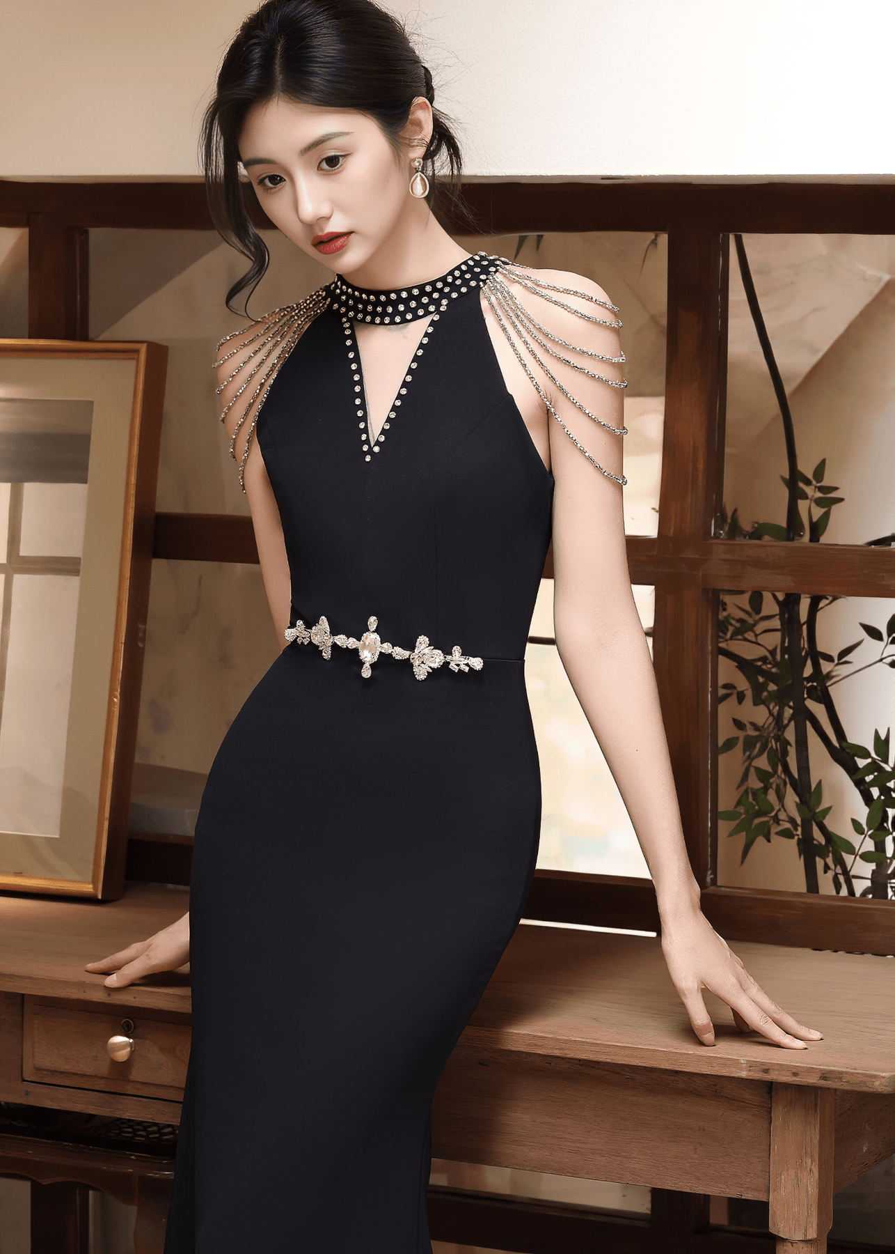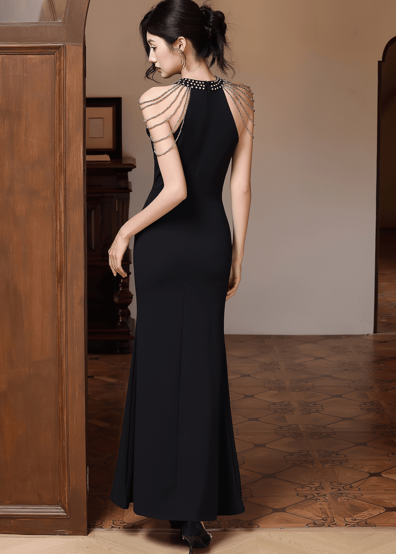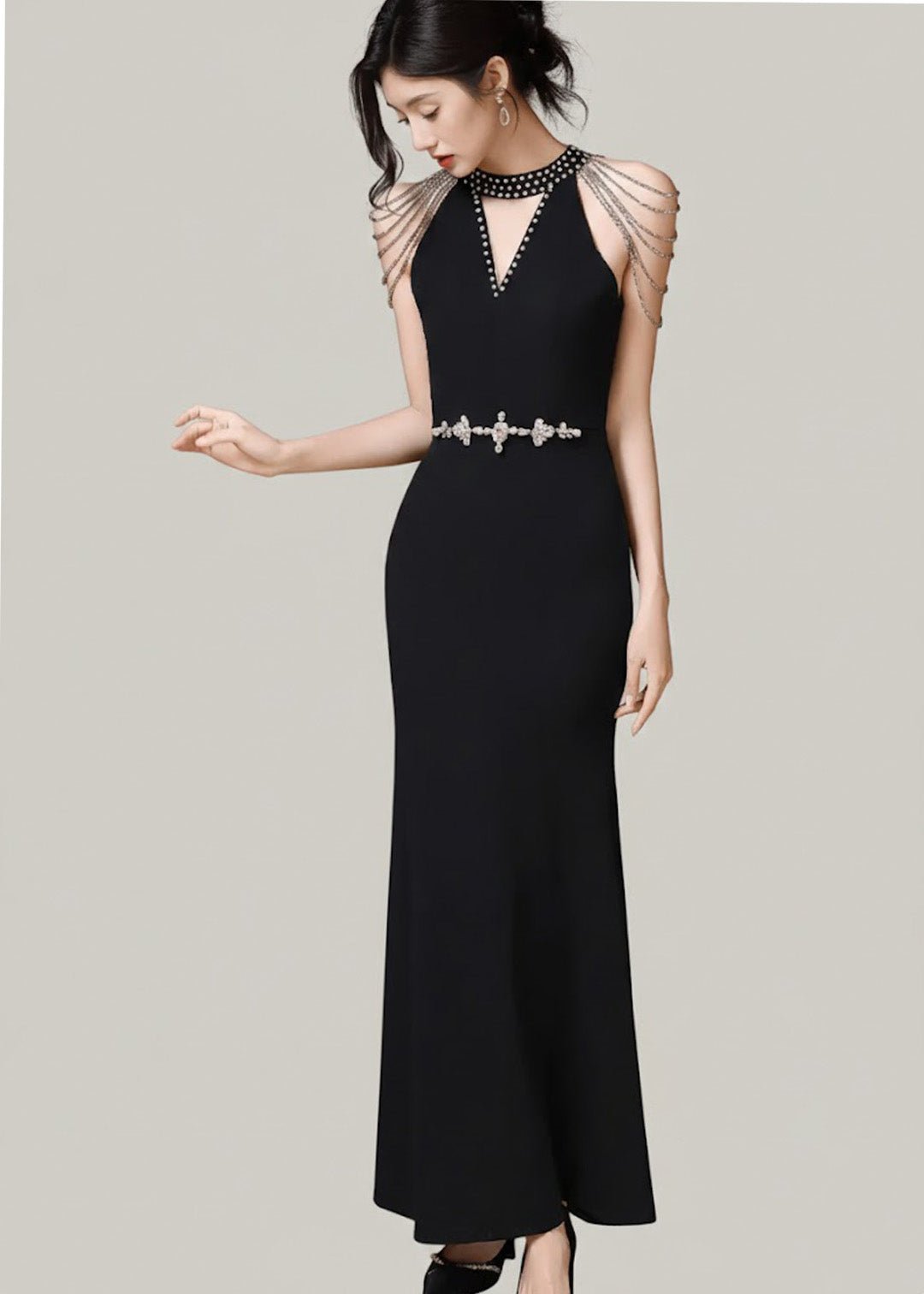 ビジューデコルテチェーンショルダーマーメイドドレス - Vera Lumina