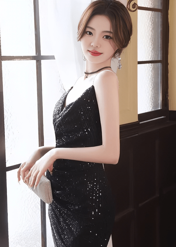 スクエアネックビジューラインマーメイドドレス - Vera Lumina