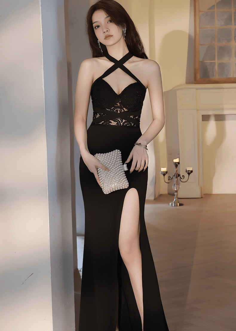 クロスストラップレースマーメイドドレス - Vera Lumina