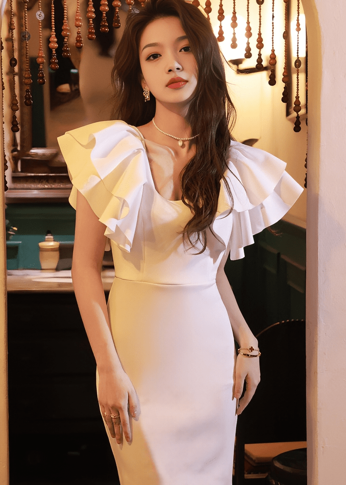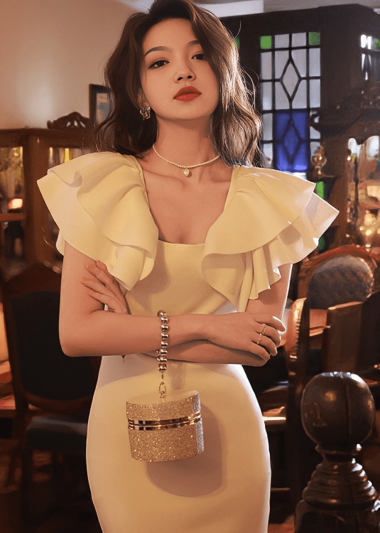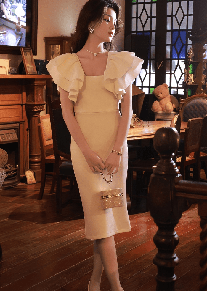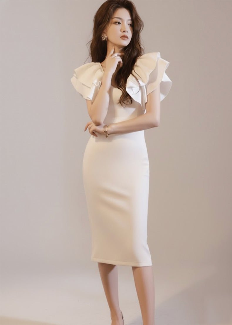 ダブルフリルスリーブタイトドレス - Vera Lumina