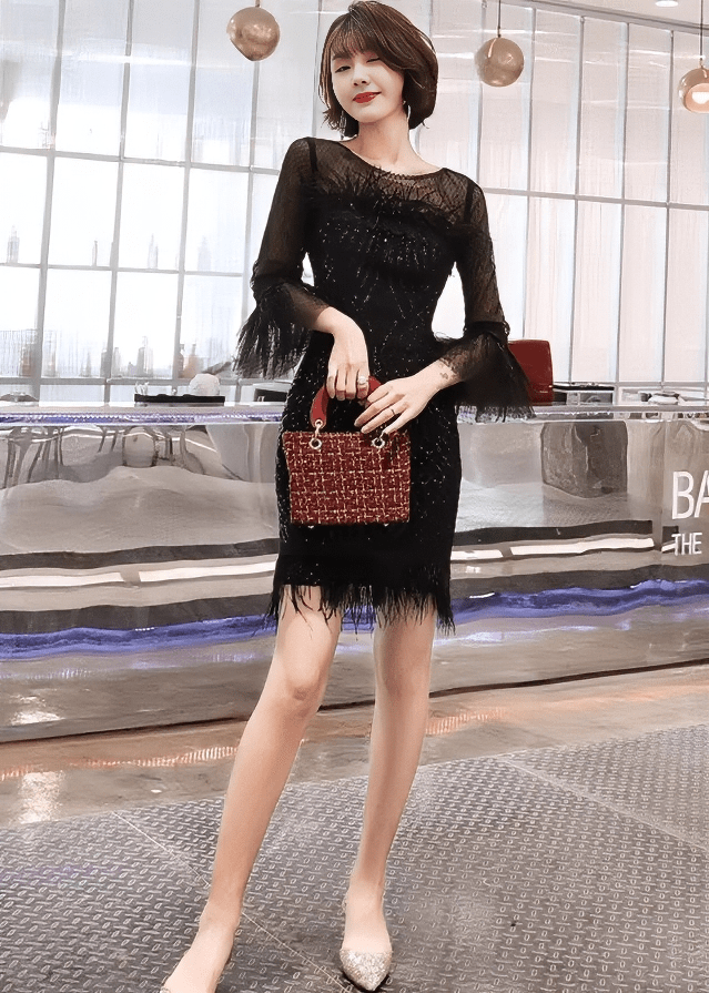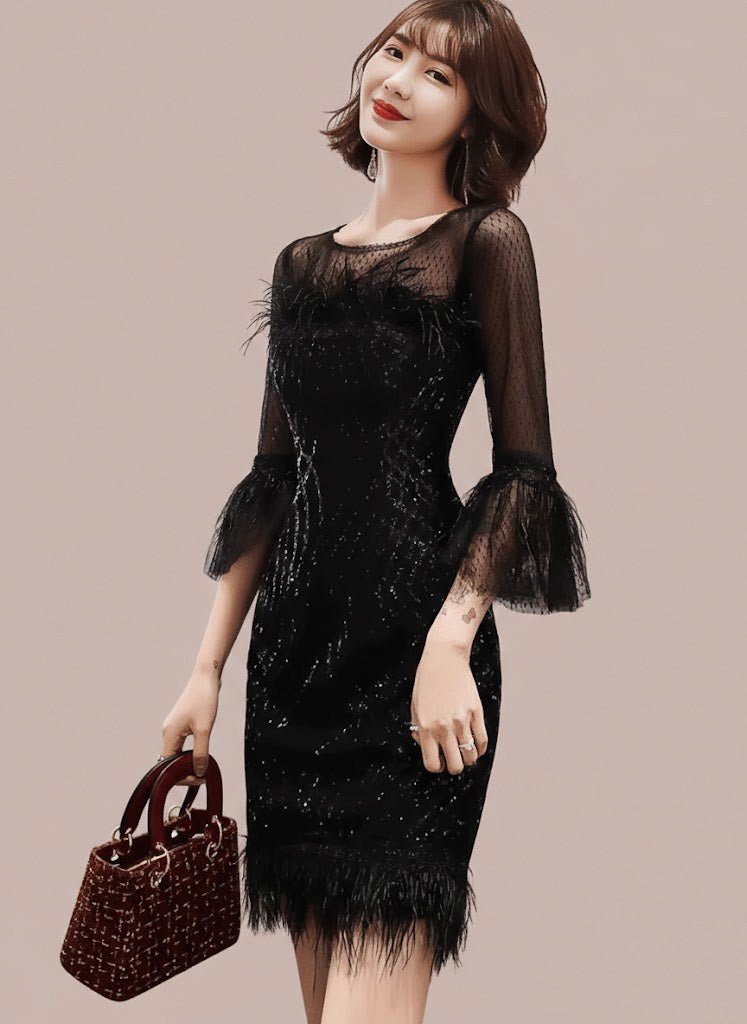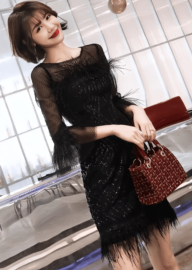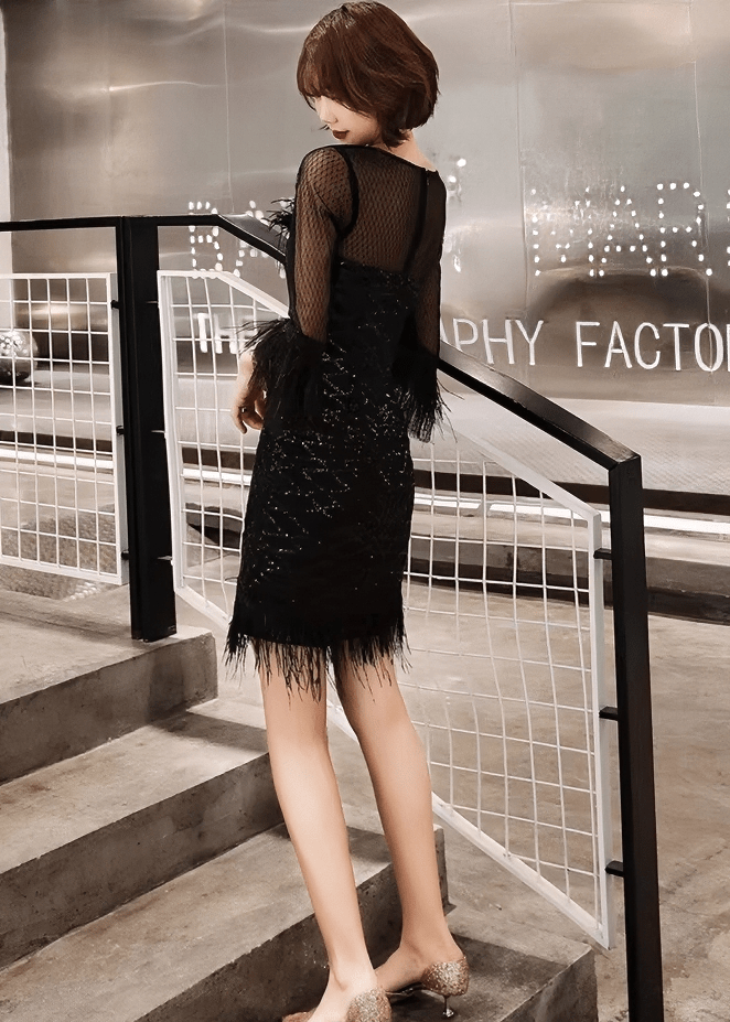 シアースリーブフェザービジュータイトドレス - Vera Lumina