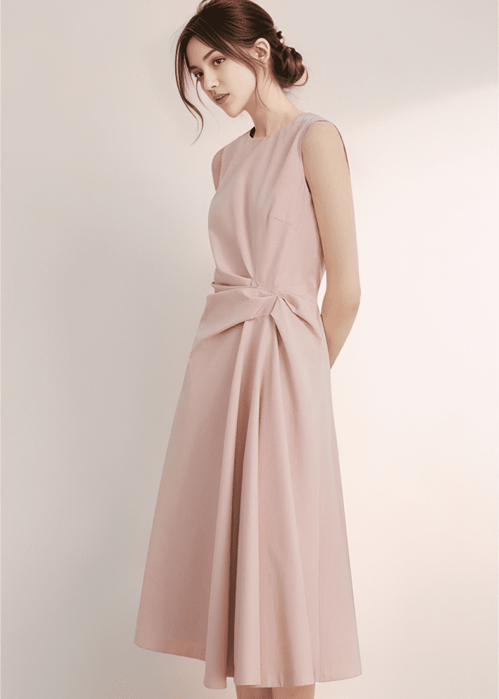 サイドツイストドレープフレアワンピース
