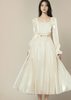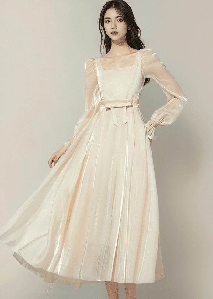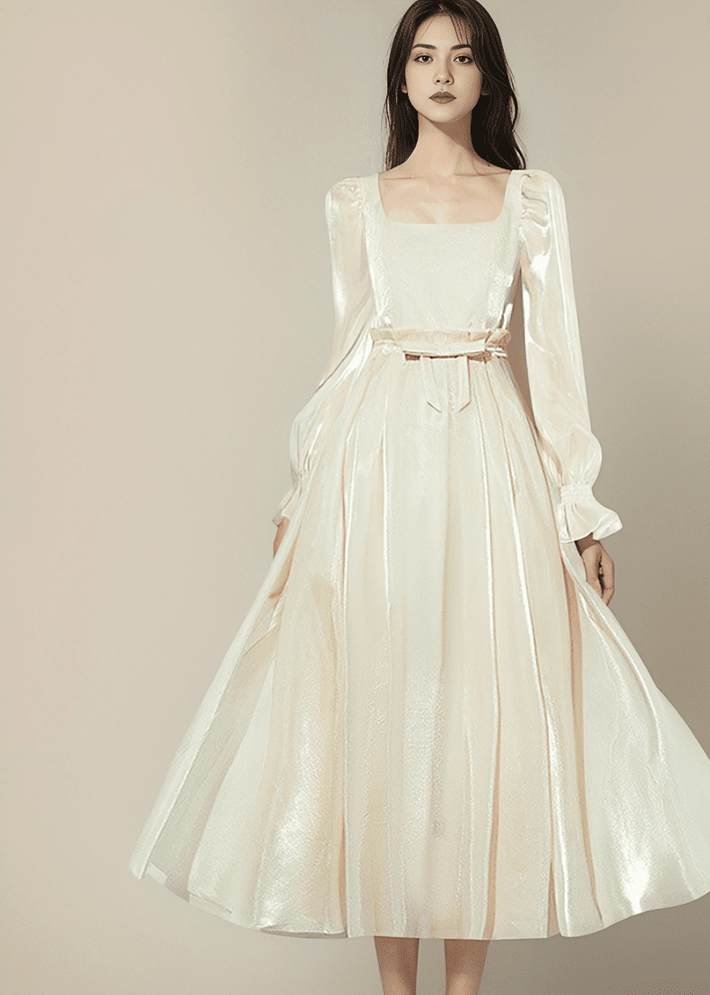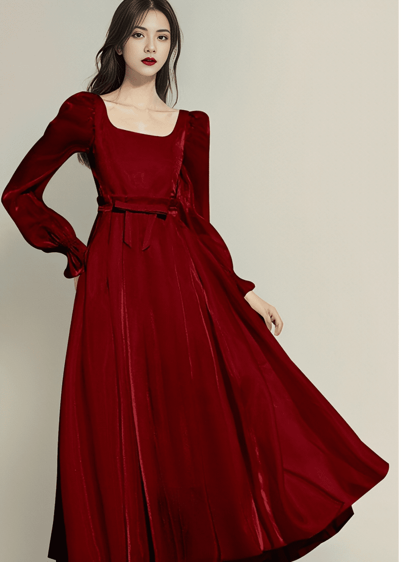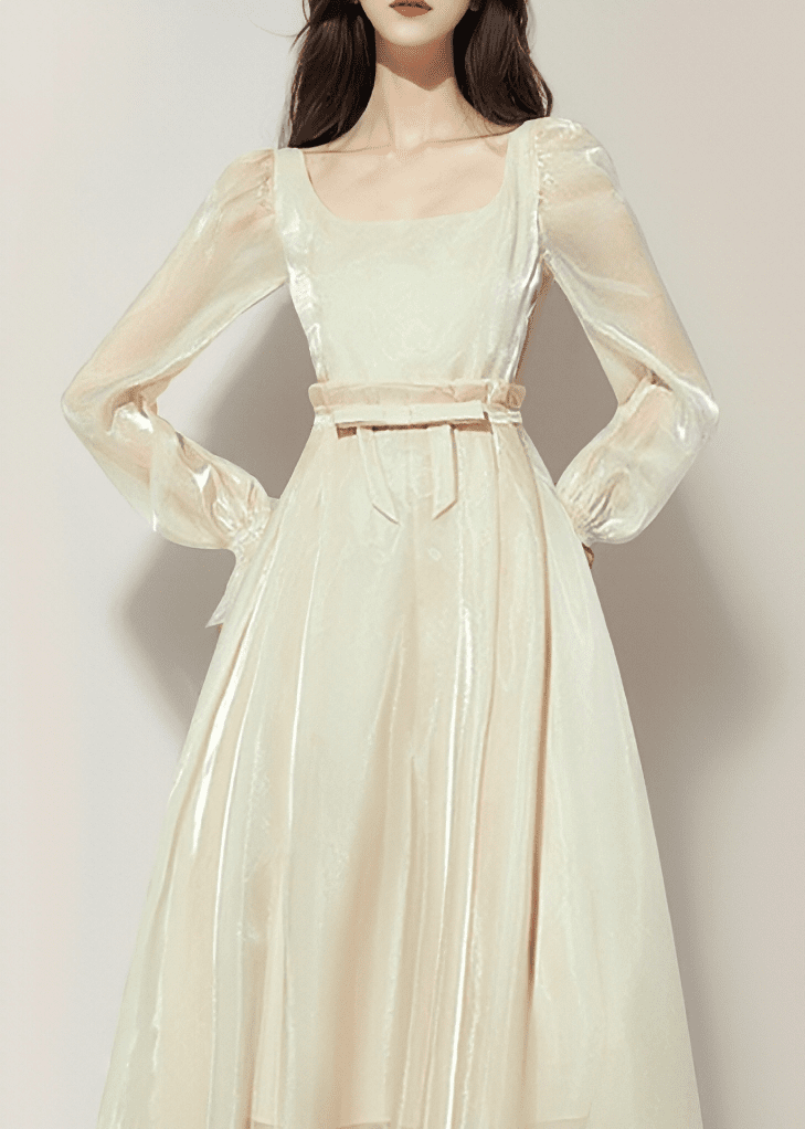 シルキーサテンサイドギャザーロングワンピース - Vera Lumina