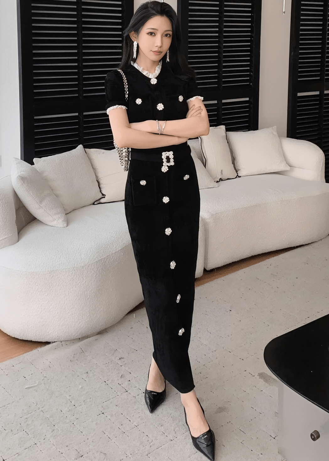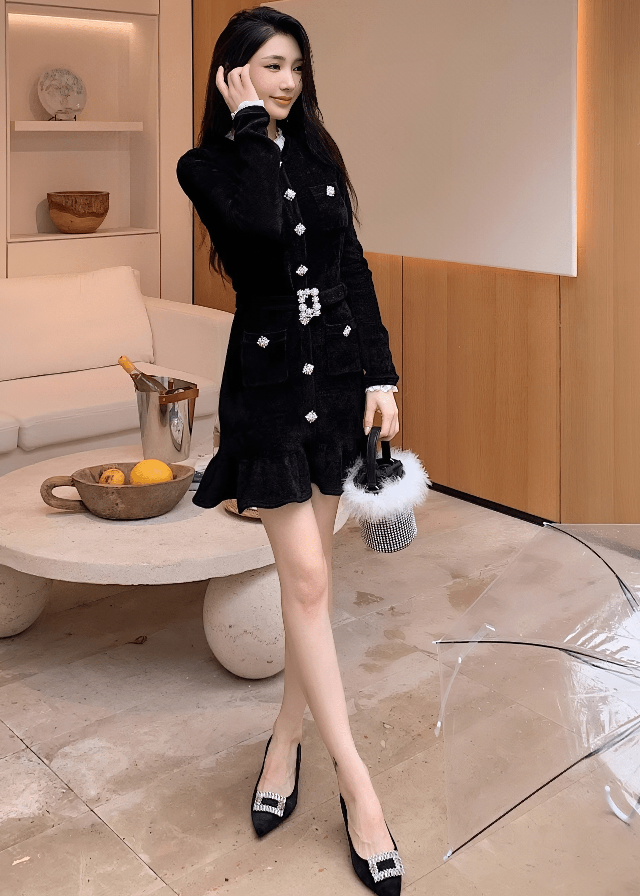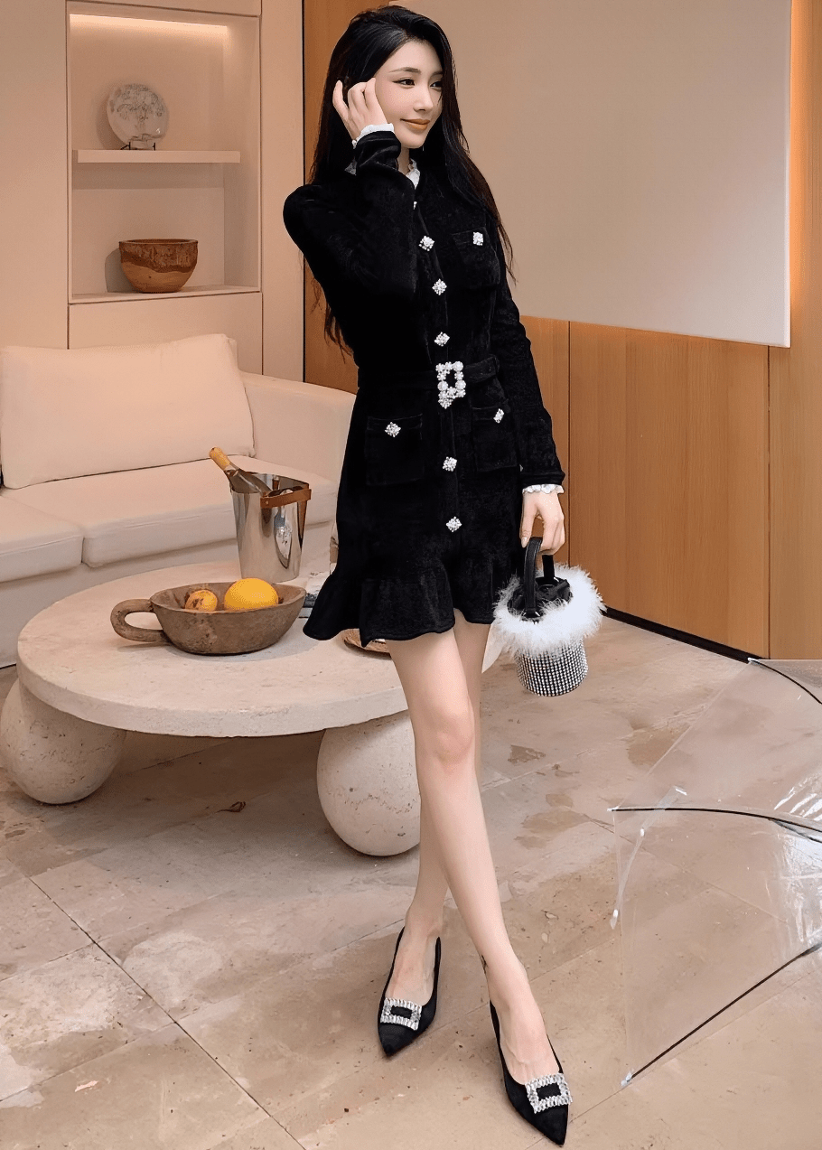 ビジューベルトフリルヘムラインドレス - Vera Lumina