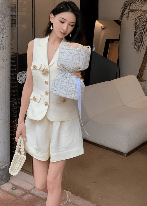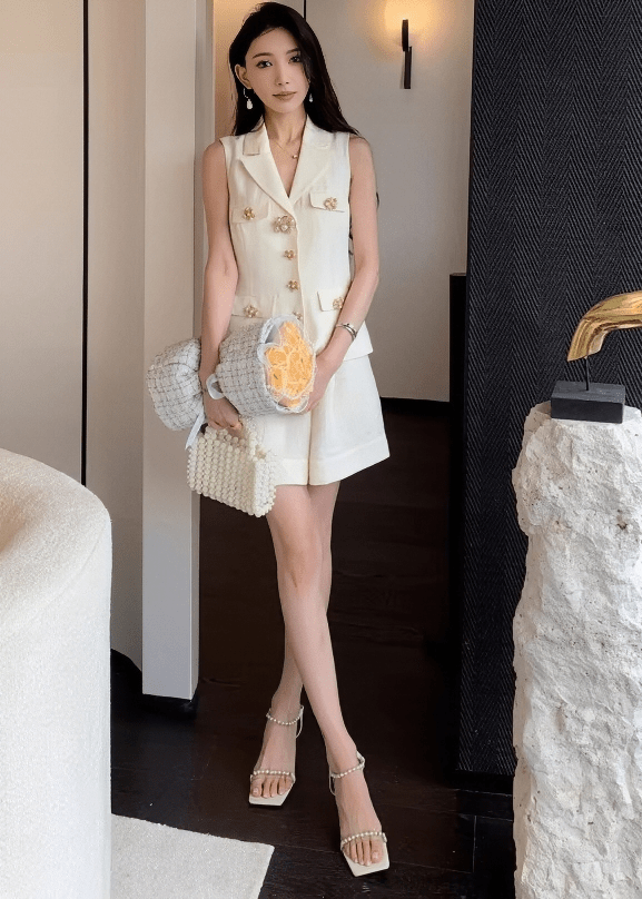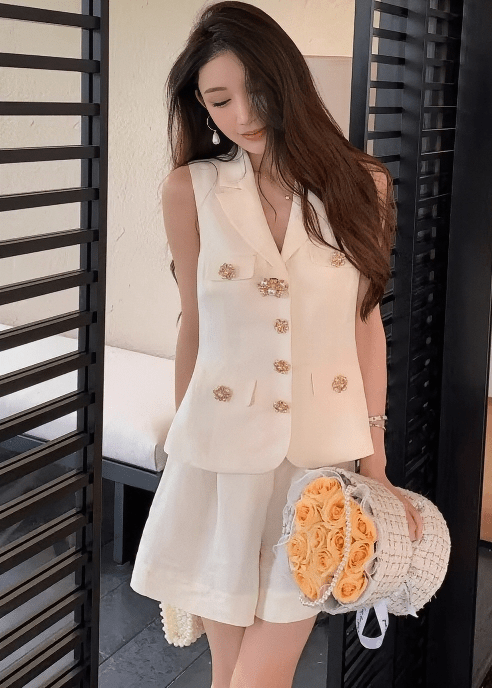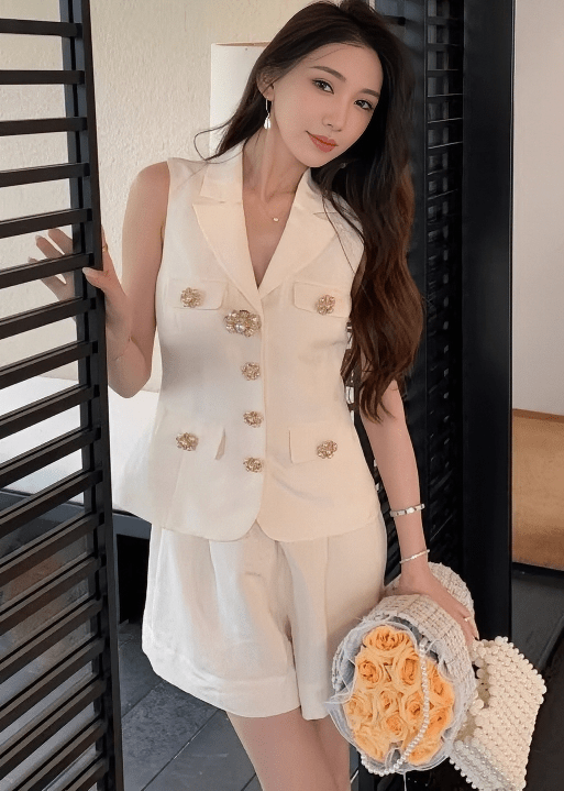 ビジューボタンノースリーブジャケット&ショートパンツ
