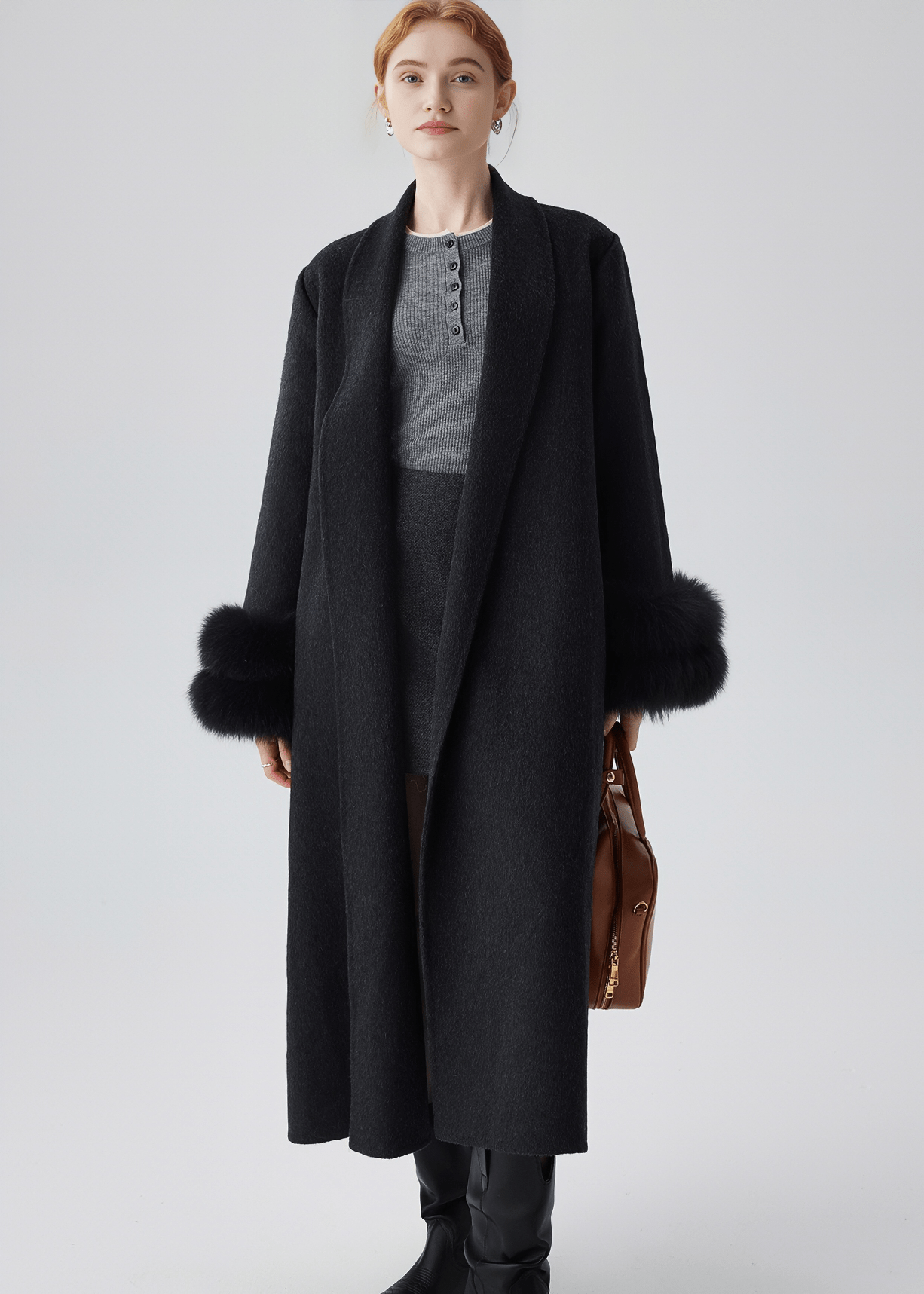 FUR CUFF ROBE COAT - Vera Lumina