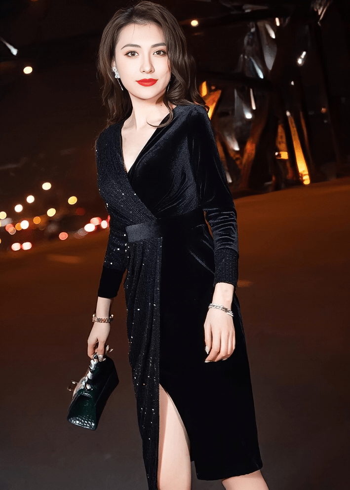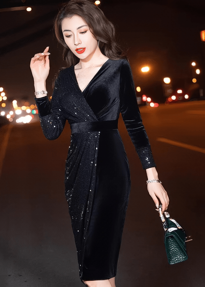 スパンコールベルベットラップドレス - Vera Lumina