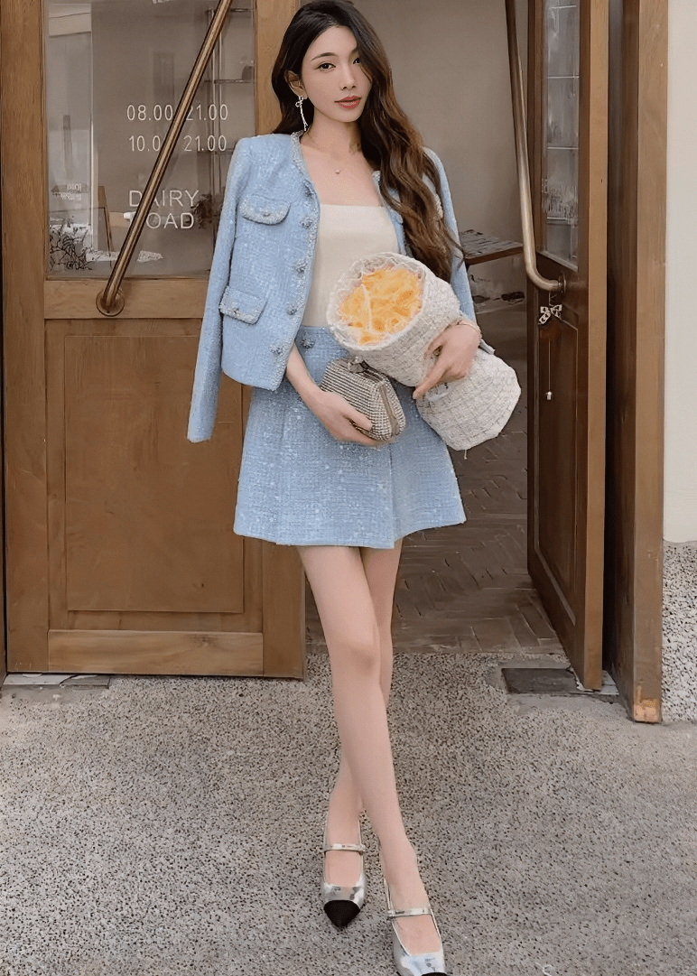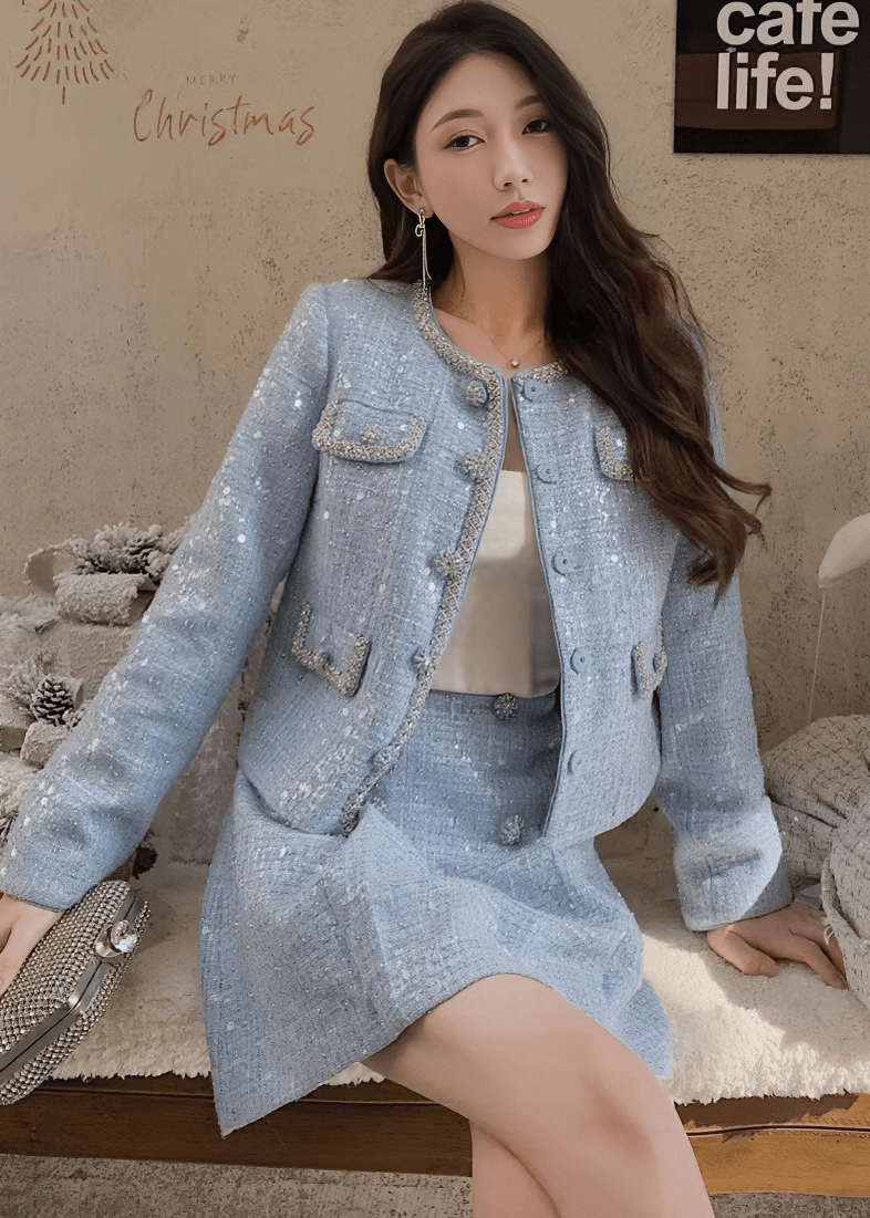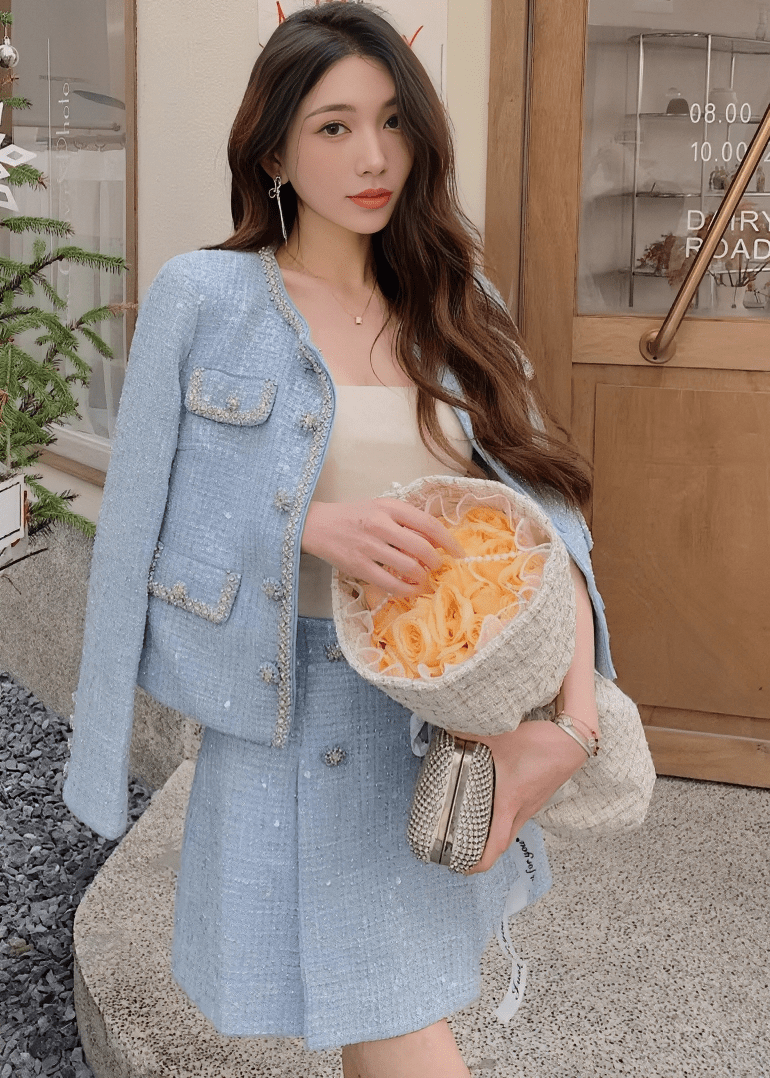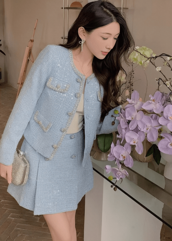 ビジューボタンノーカラージャケット&ミニスカート - Vera Lumina