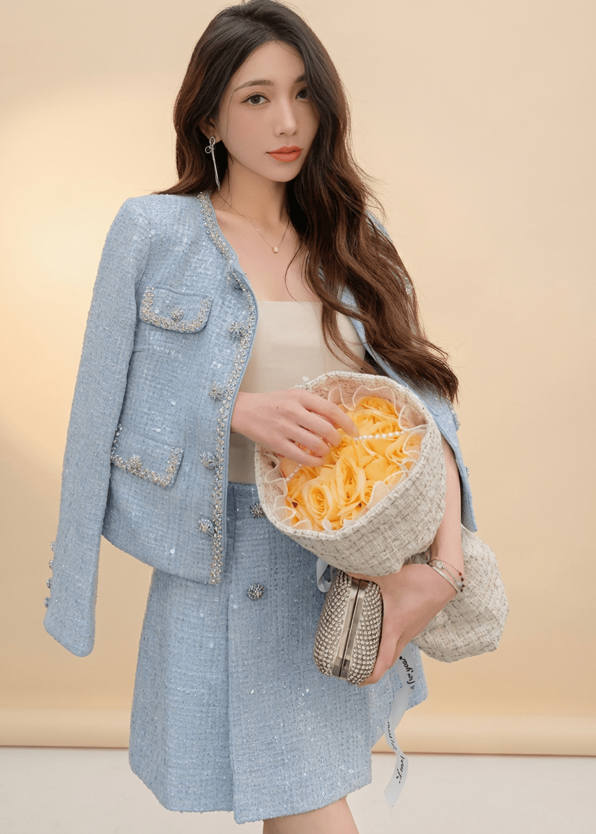 ビジューボタンノーカラージャケット&ミニスカート