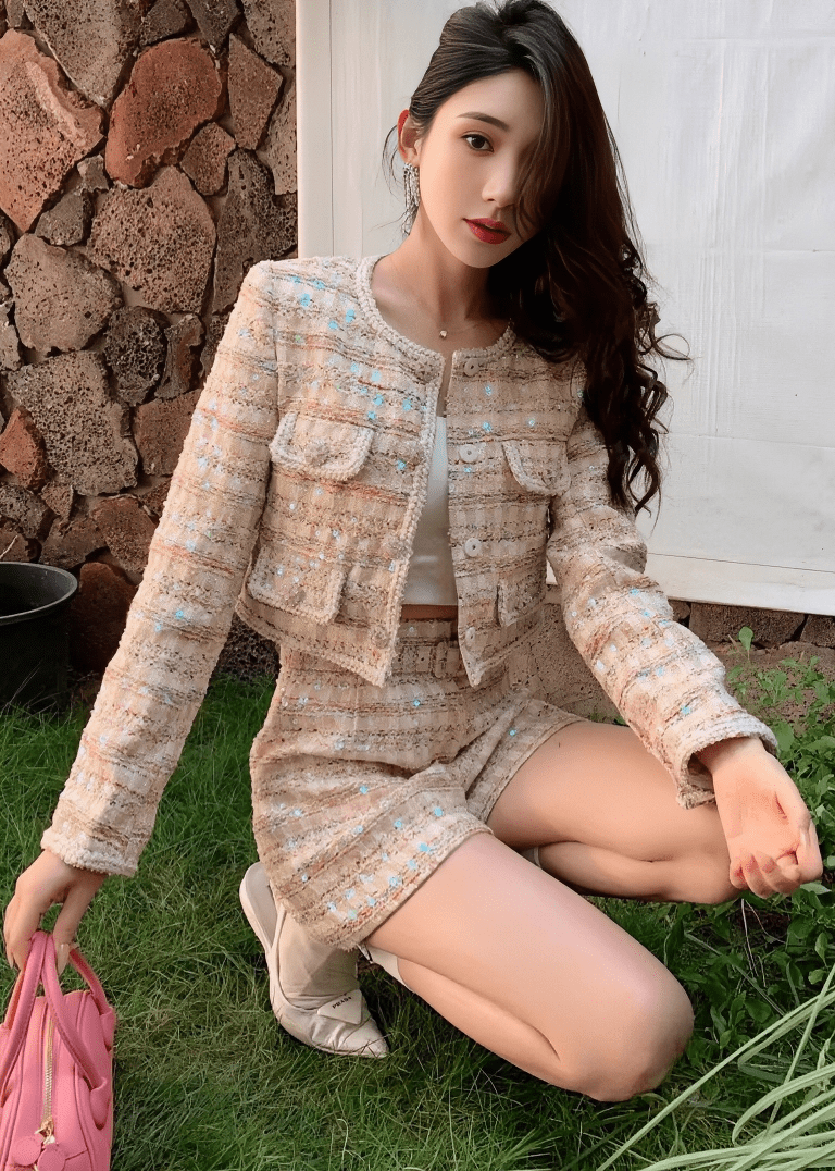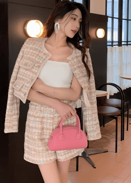 ラメツイードノーカラージャケット&ショートパンツ - Vera Lumina