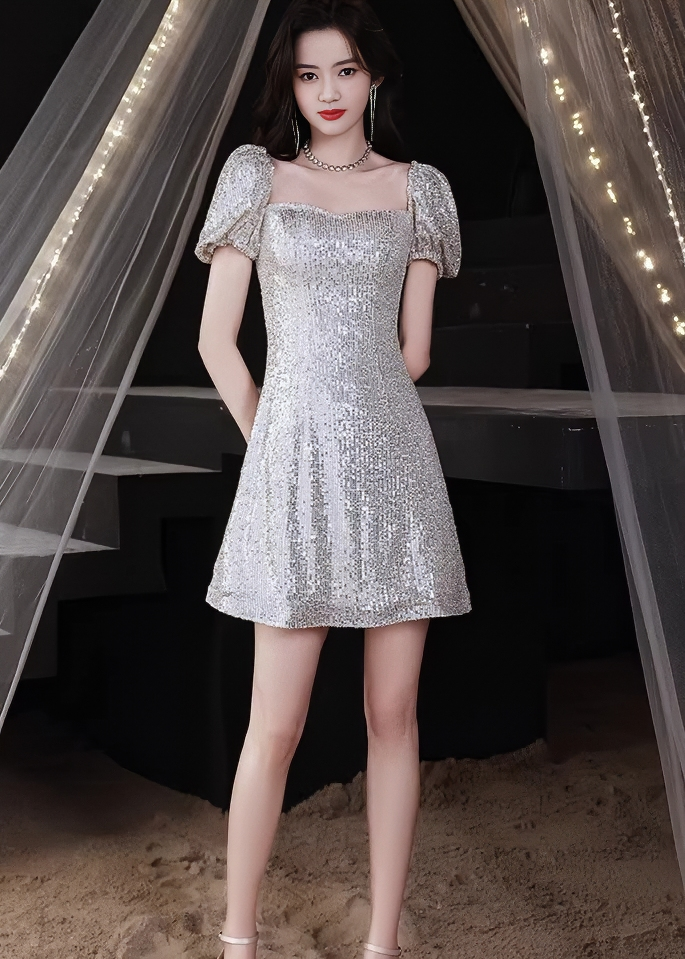 Bijou-Kleid in A-Linie mit Glitzer und Puffärmeln