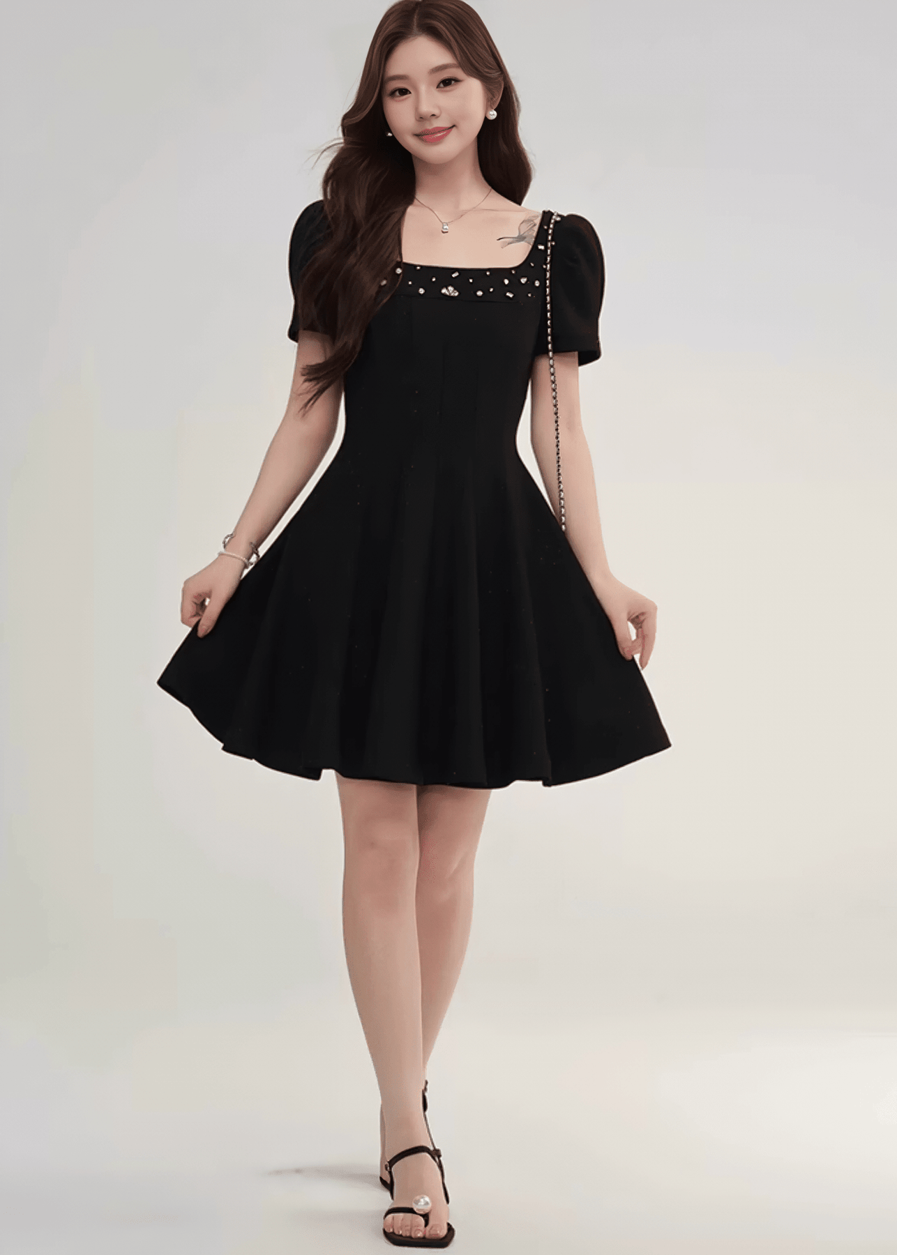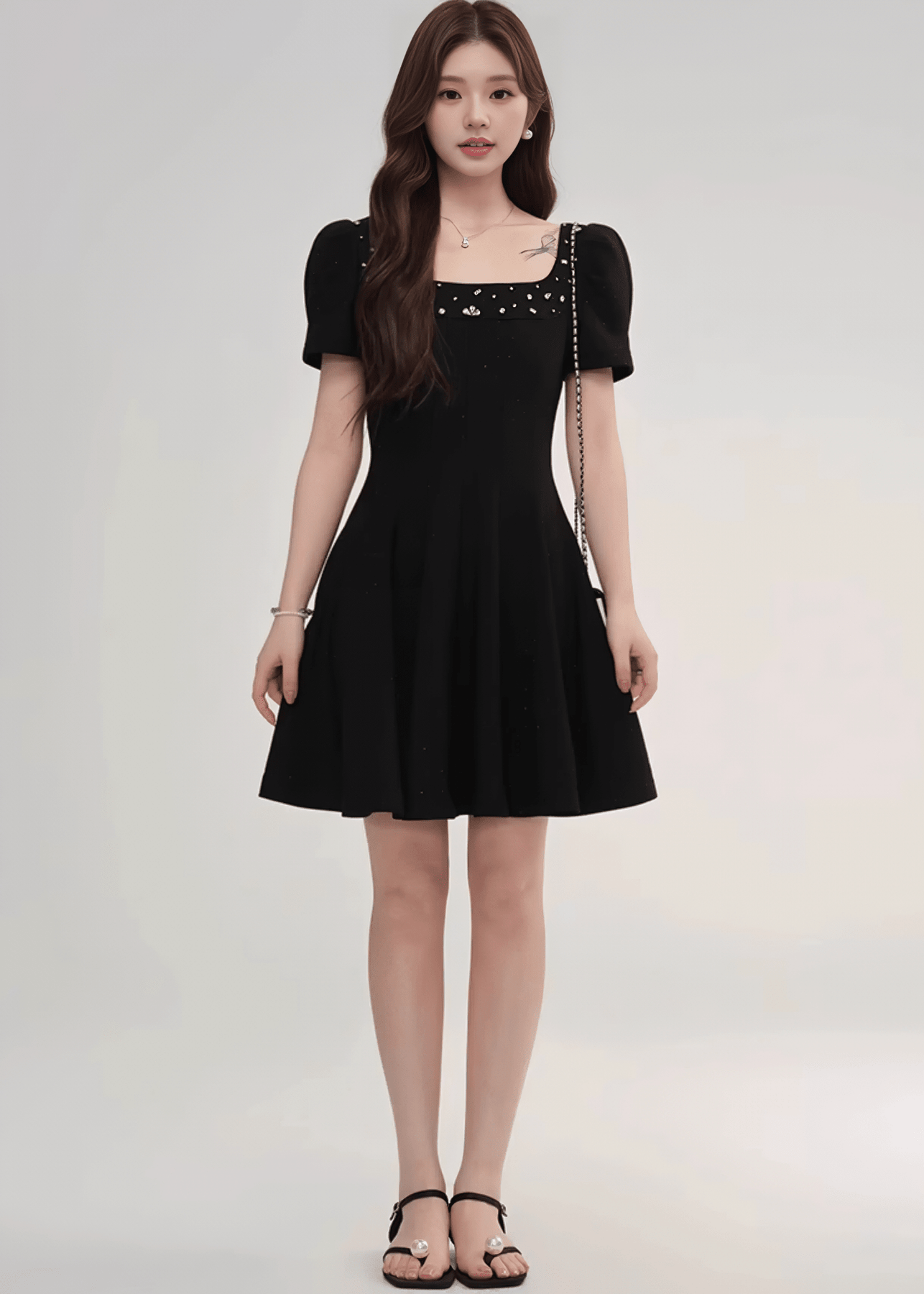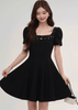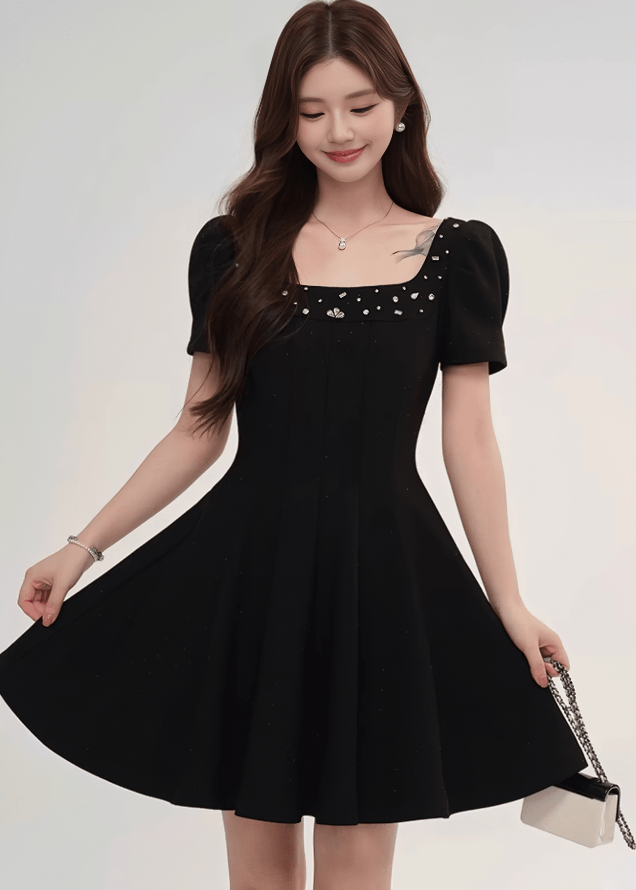 Bijou A-Linien-Kleid mit eckigem Ausschnitt und Puffärmeln