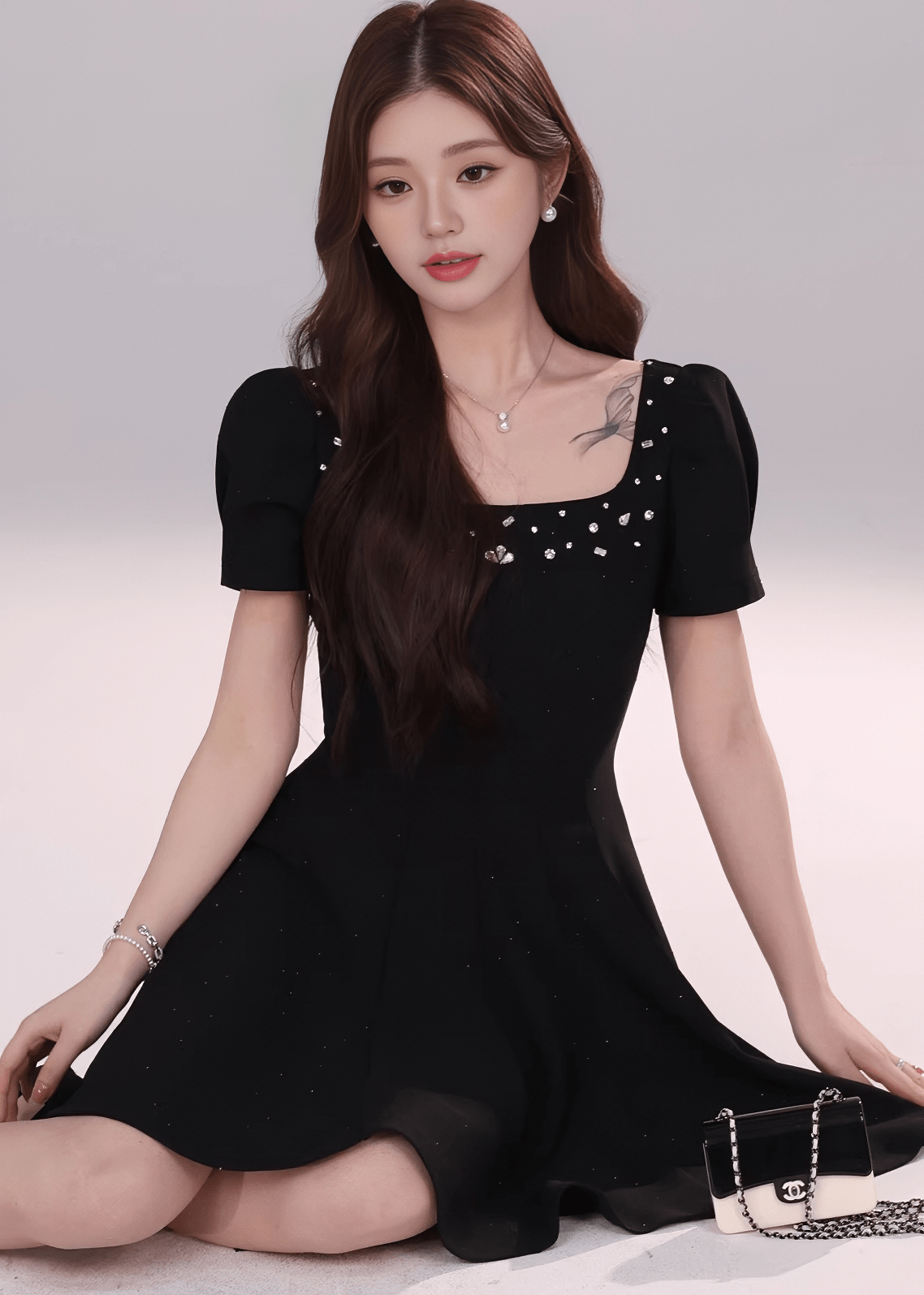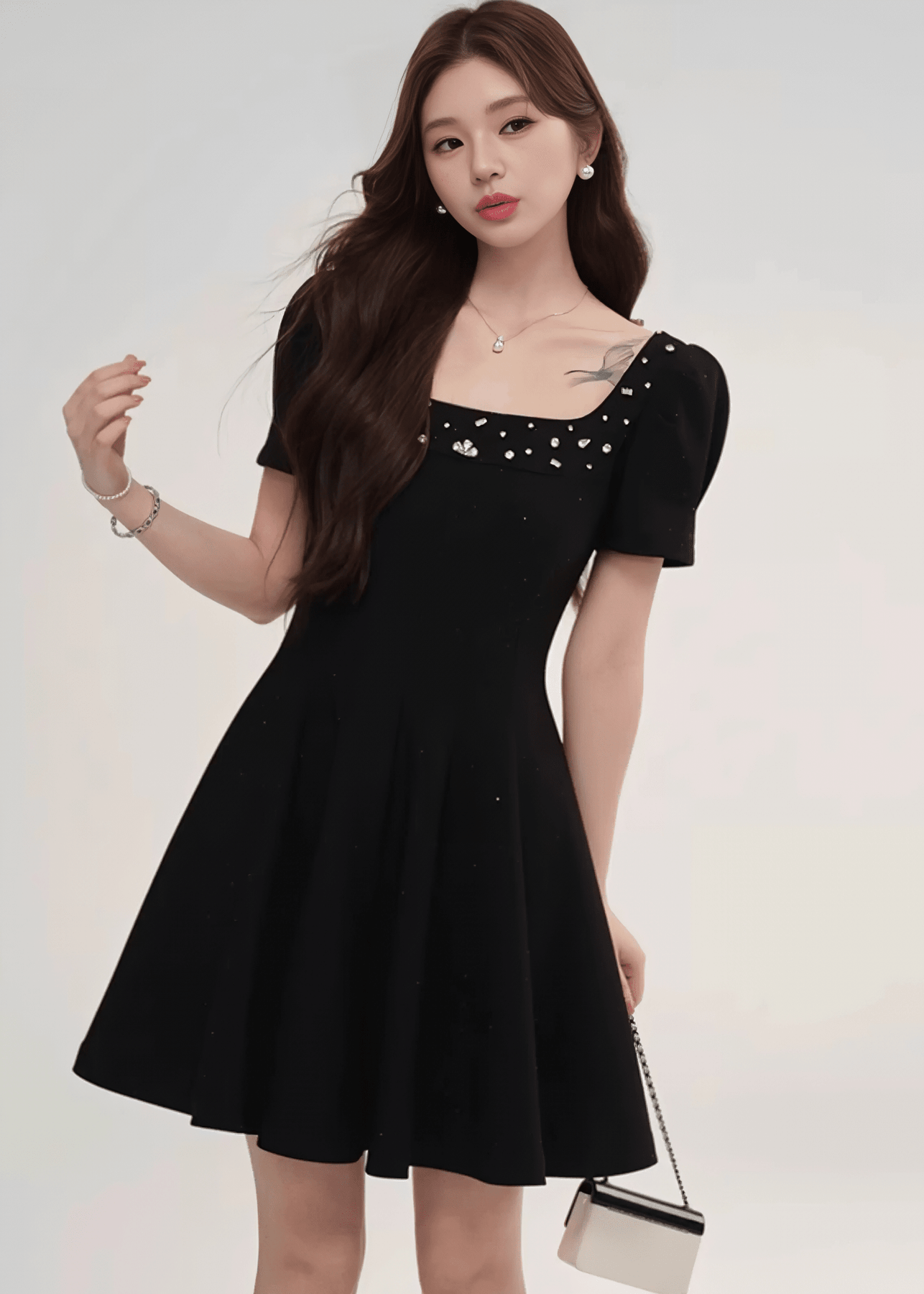ビジュースクエアネックパフスリーブAラインドレス - Vera Lumina