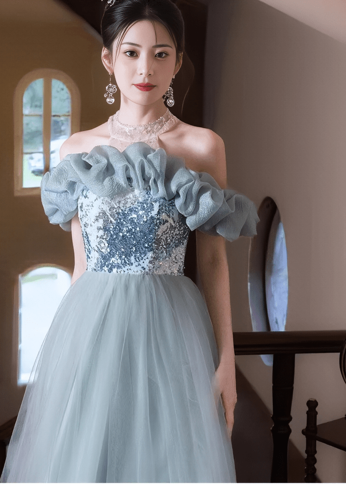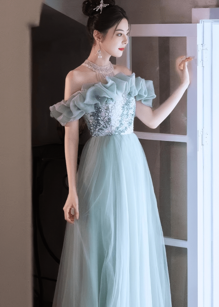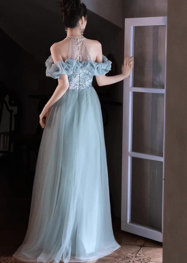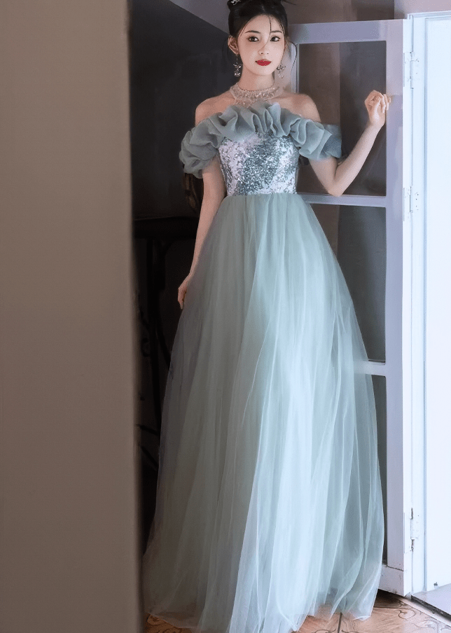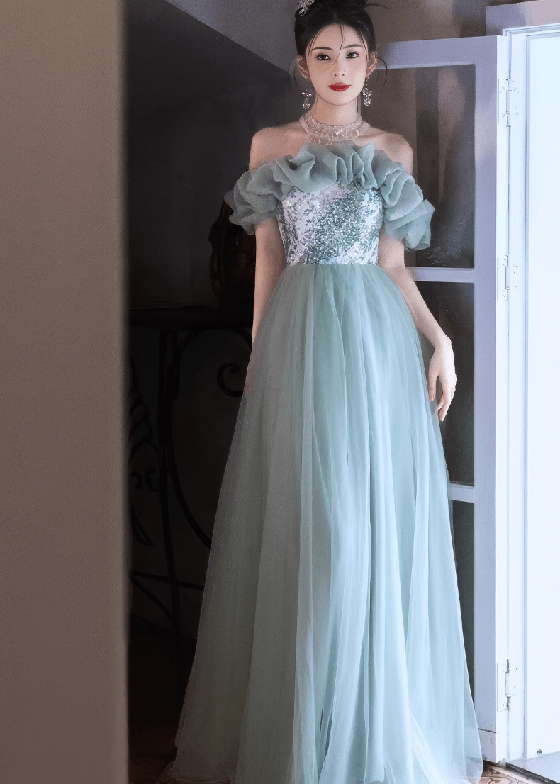 ビジューフリルオフショルダーチュールAラインドレス - Vera Lumina