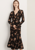 【DESIGN / STYLING】繊細なフラワープリントをあしらったフェミニンなラップワンピース。デコルテを美しく見せるVネックと、自然なカーブを描くラップ風デザインが女性らしさを引き立て、上品で洗練された印象に仕上げます。ウエストは共布ベルトで絞ることができ、スタイルアップを叶えるメリハリのあるシルエットを演出。袖口にかけて広がるフレアスリーブが軽やかな動きを添え、裾に向かって美しく広がるマーメイドラインが優雅な存在感をプラスします。ブラックベースに小花柄を散りばめたデザインは甘さを抑えた大人フェミニンな表情で、単品はもちろんジャケットを合わせたシックな着こなしにもマッチします。