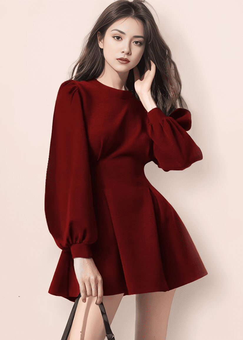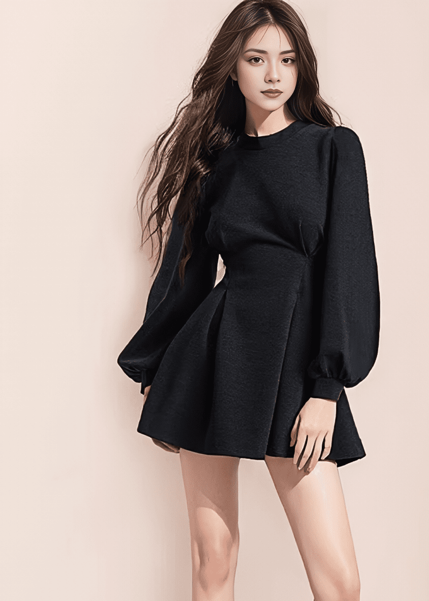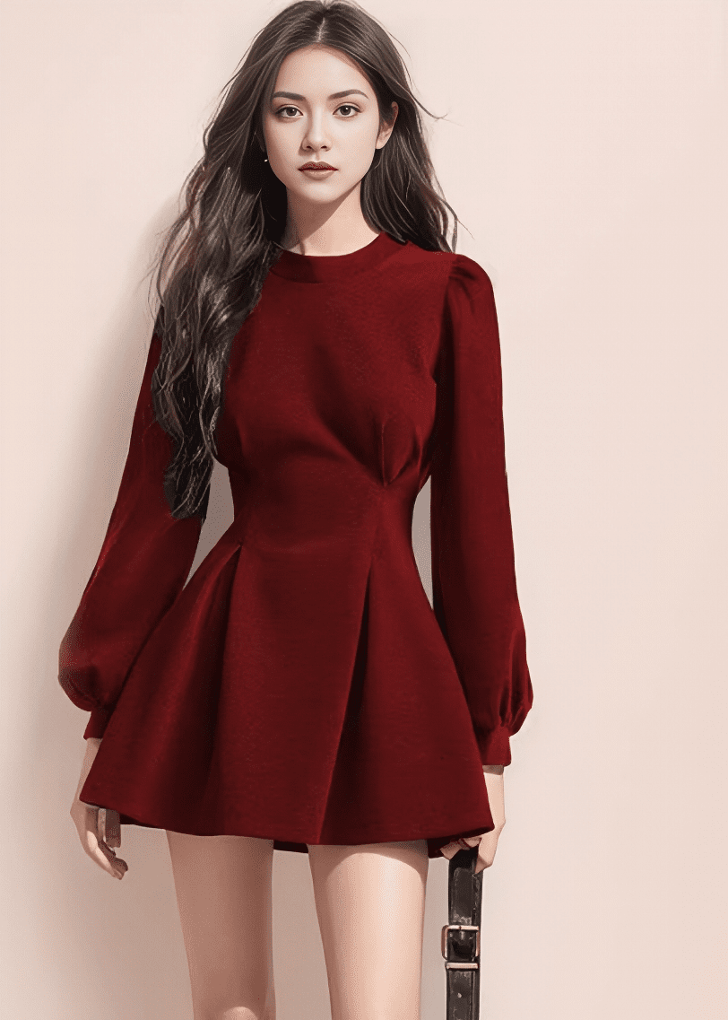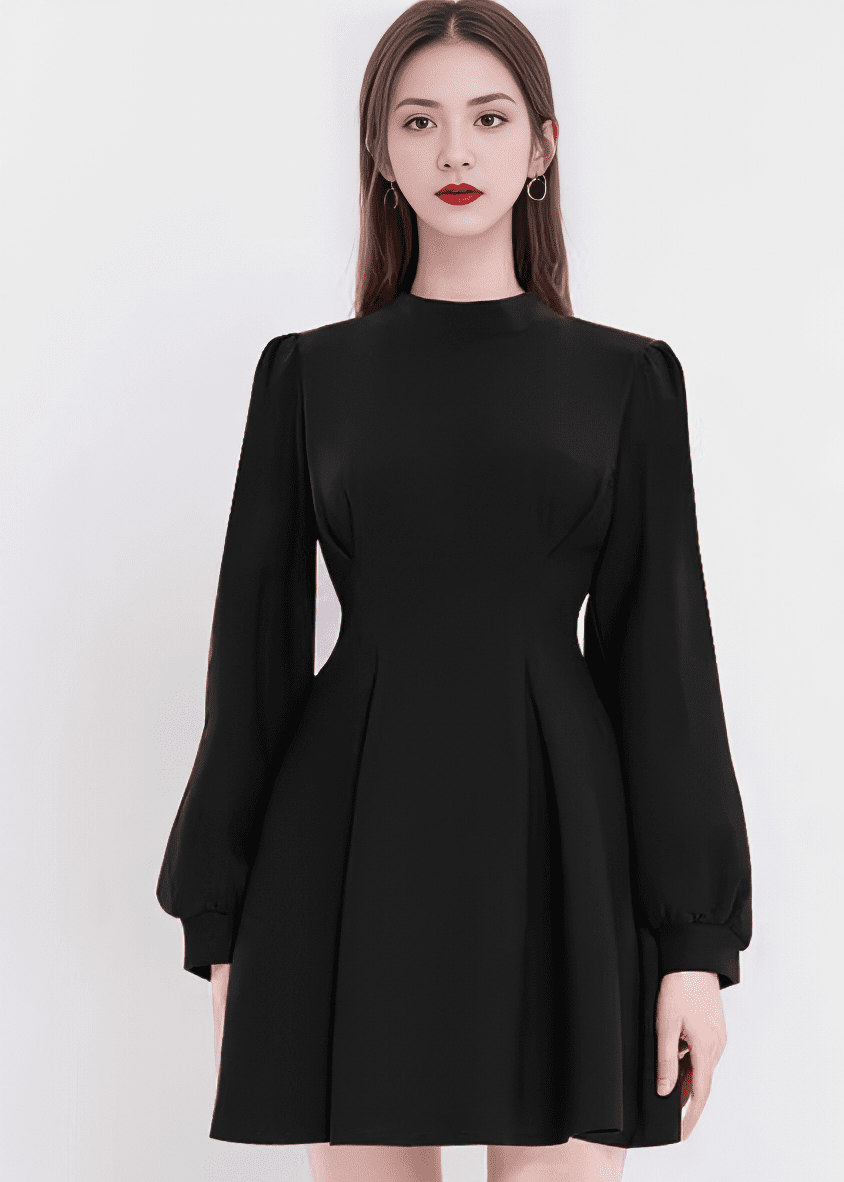パフスリーブタックフレアミニワンピース - Vera Lumina