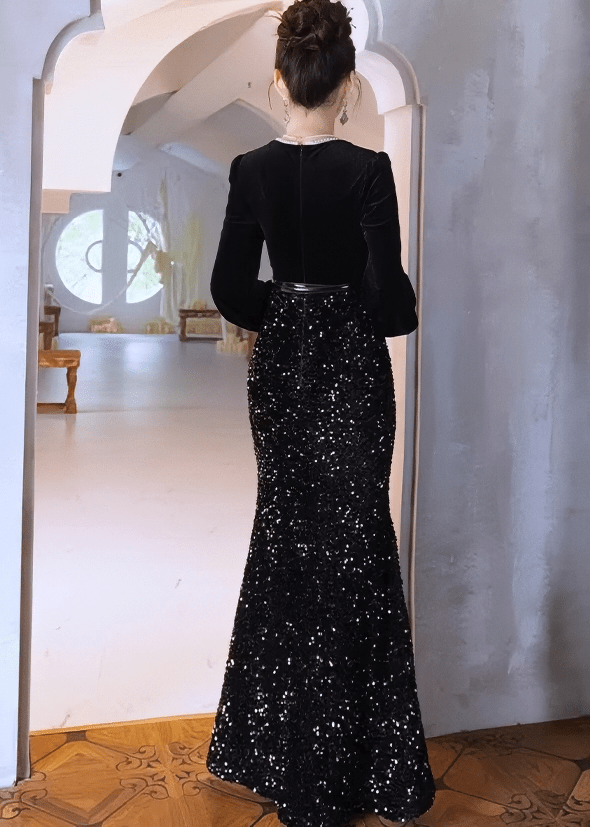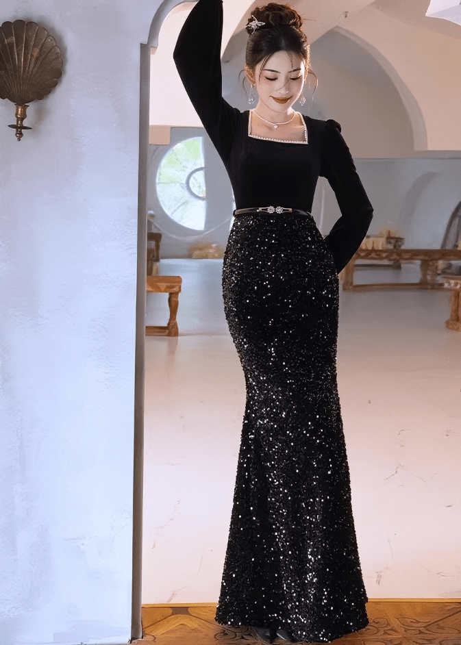 スクエアネックビジューマーメイドドレス - Vera Lumina