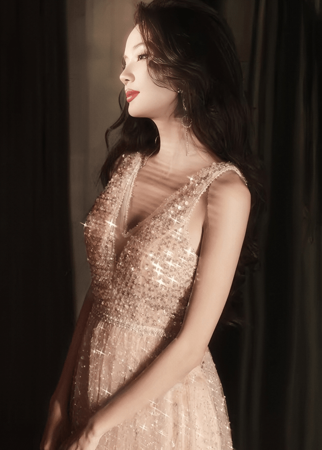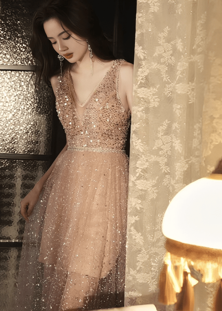 ビジューシアーチュールVネックロングドレス - Vera Lumina
