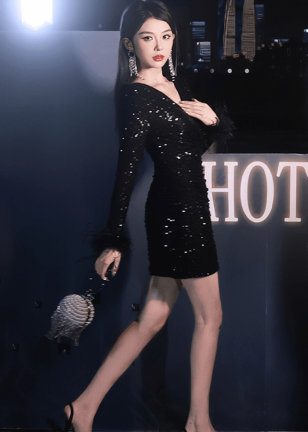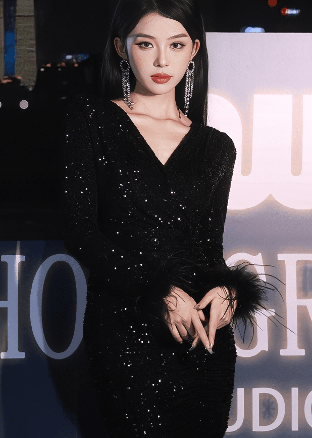 페더 커프스 비쥬 미니 드레스