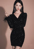 フェザーカフスビジューミニワンピース - Vera Lumina