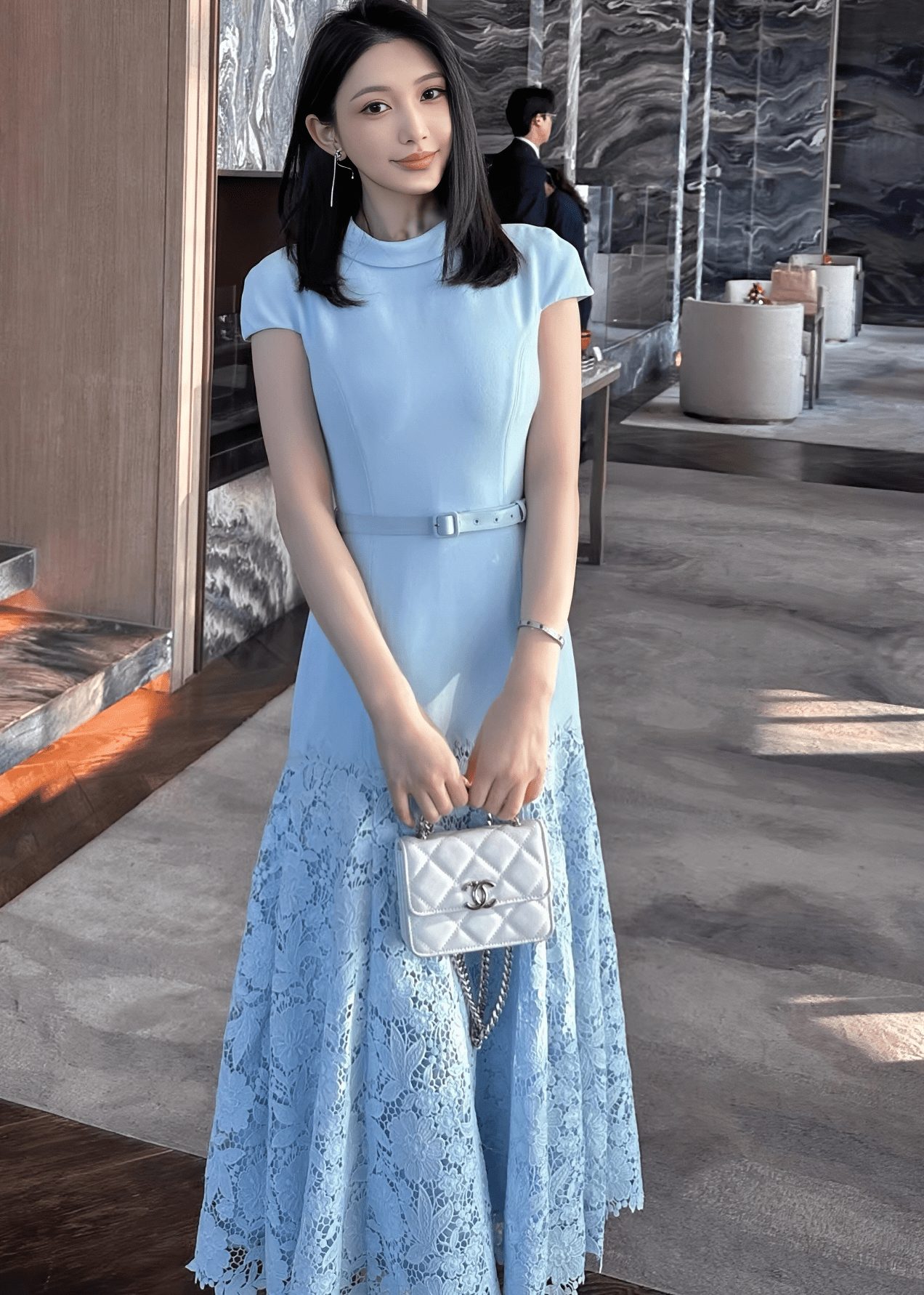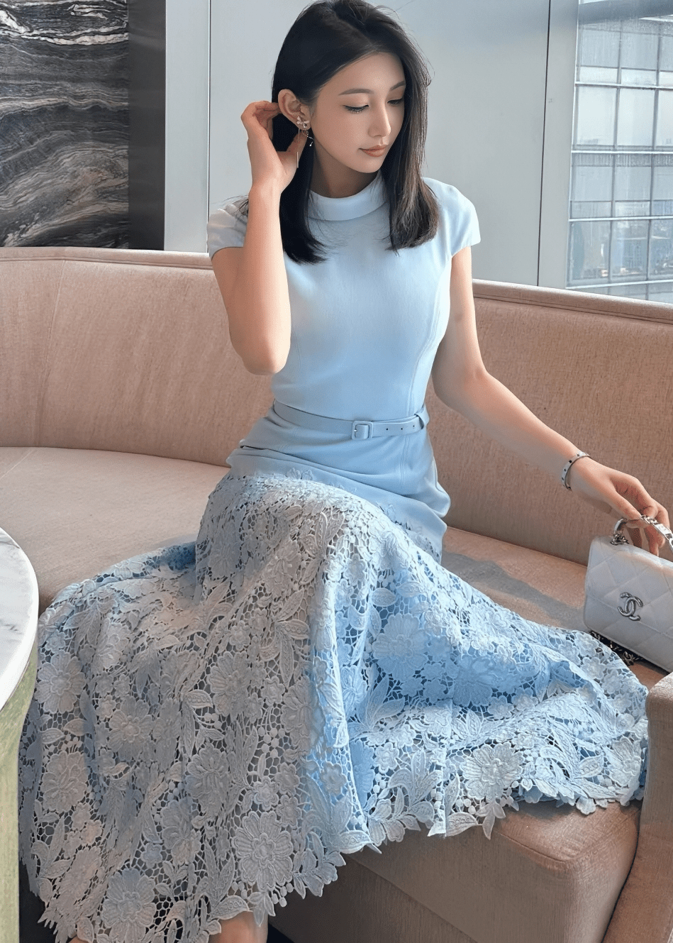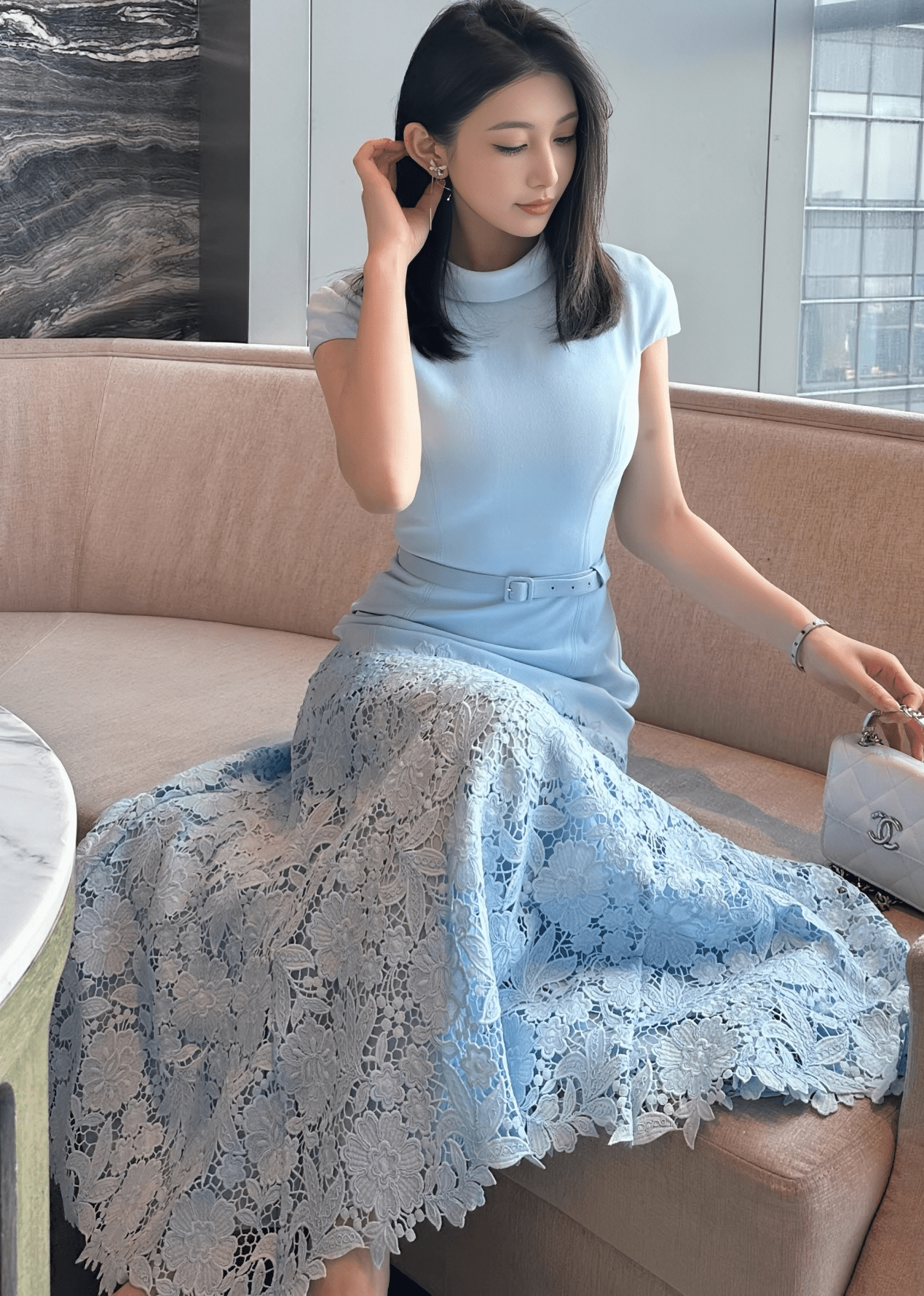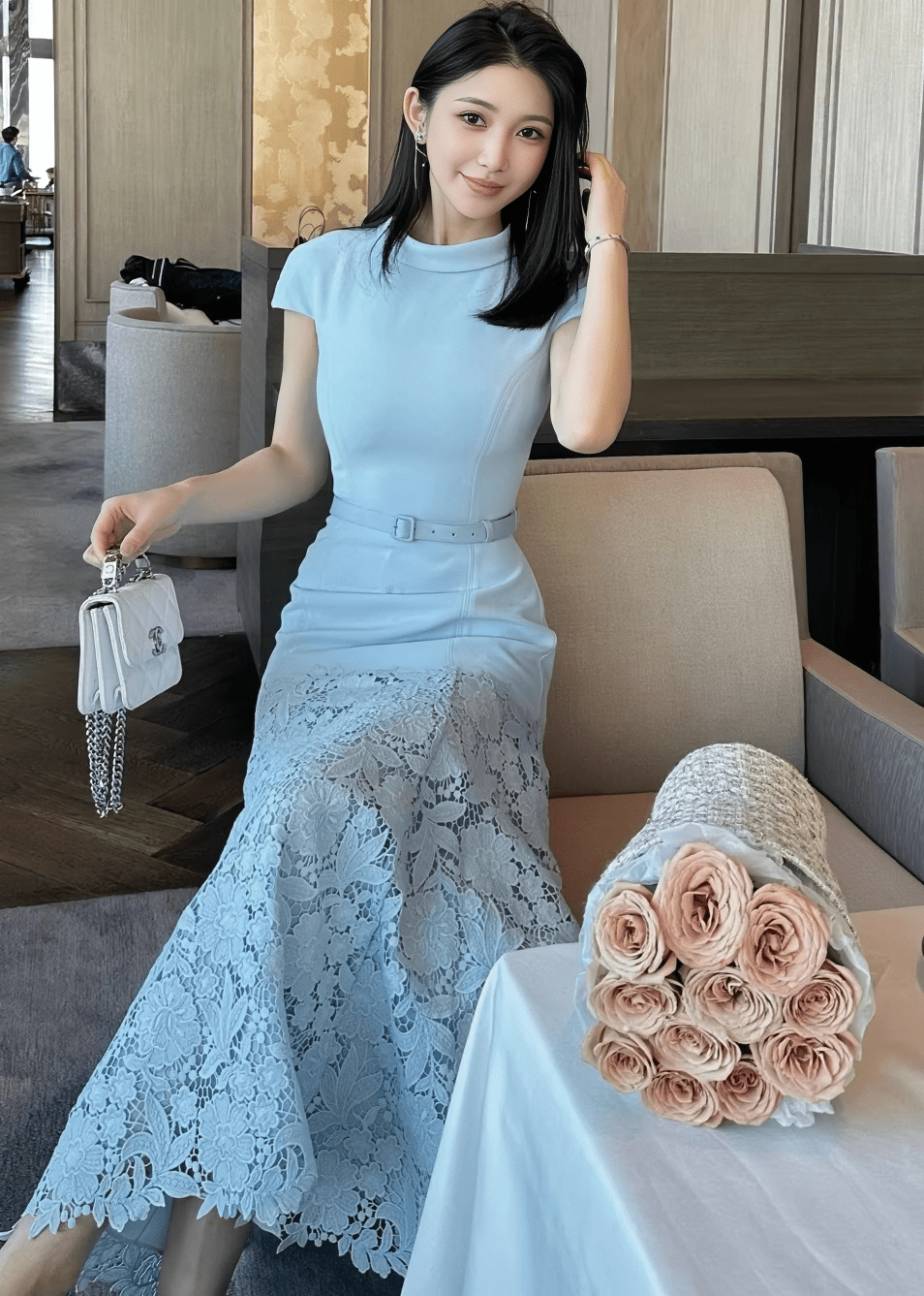 벨트 마크 레이스 인어 드레스