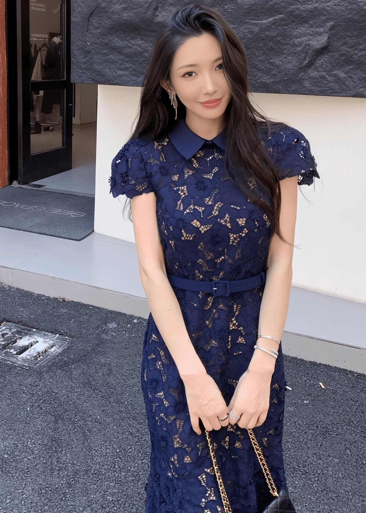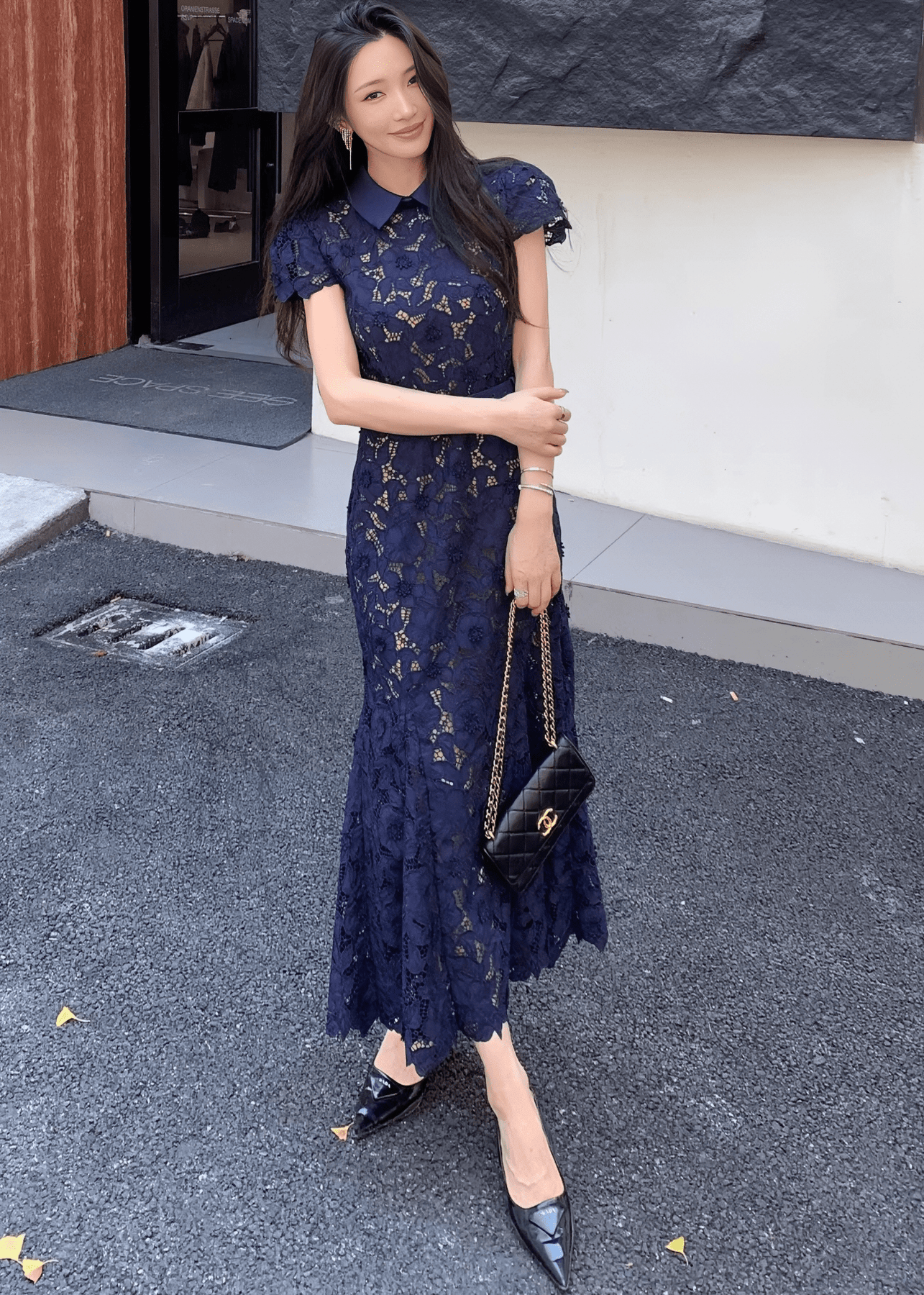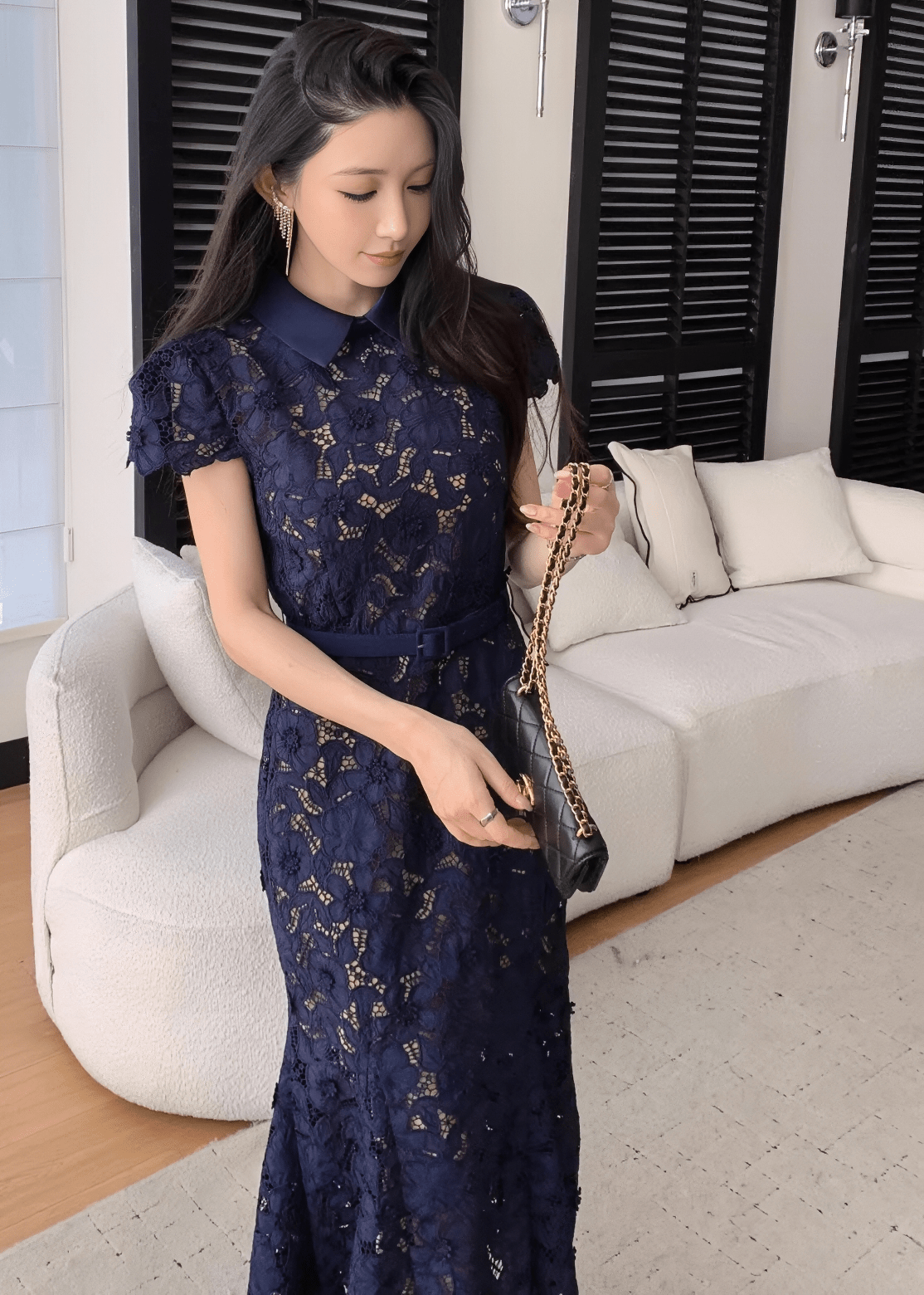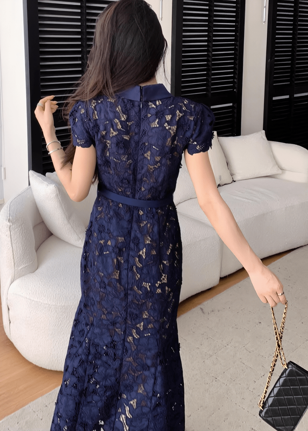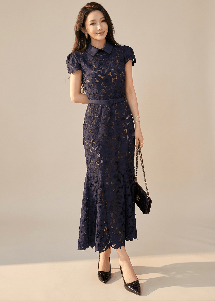 カラーベルトレースマーメイドドレス - Vera Lumina
