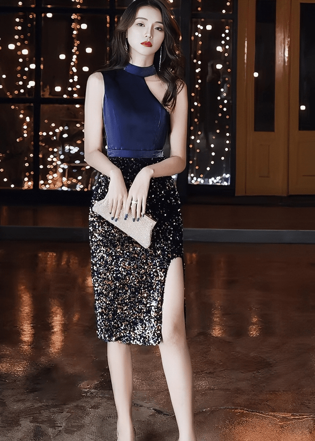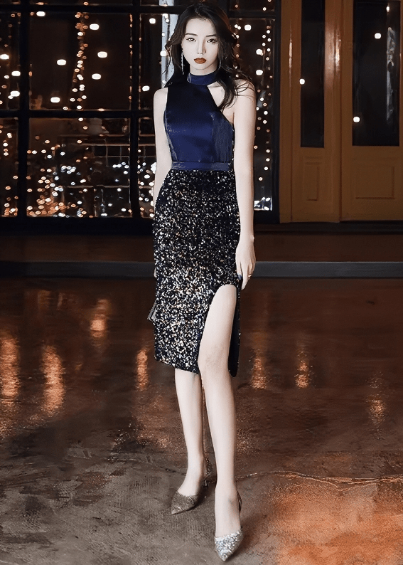 ビジューグリッターホルターネックマーメイドドレス - Vera Lumina
