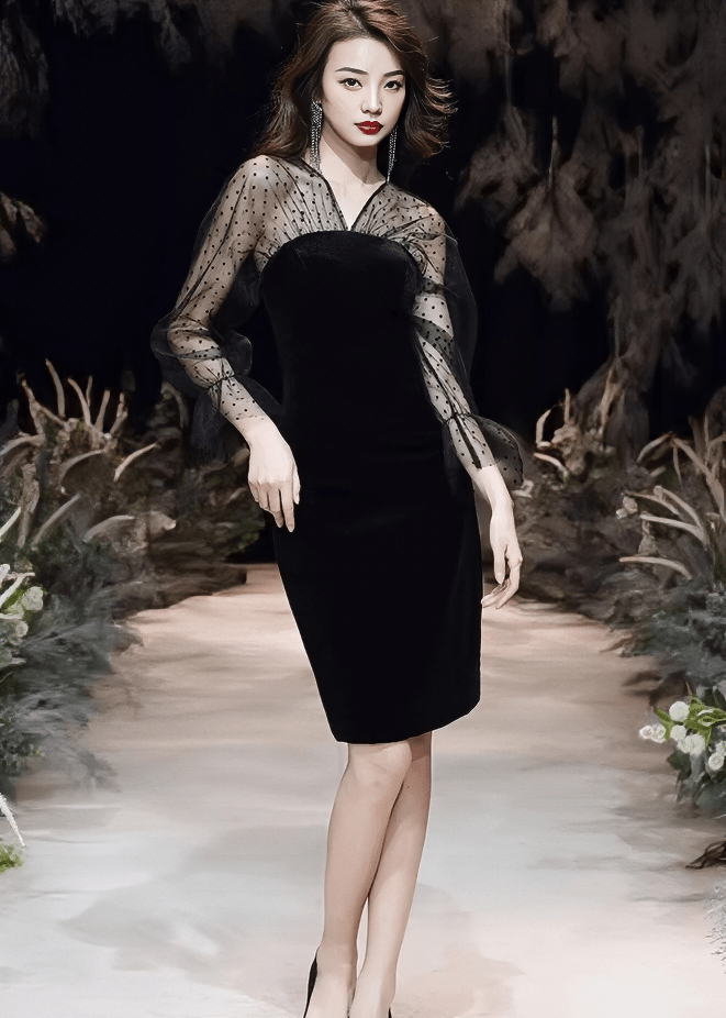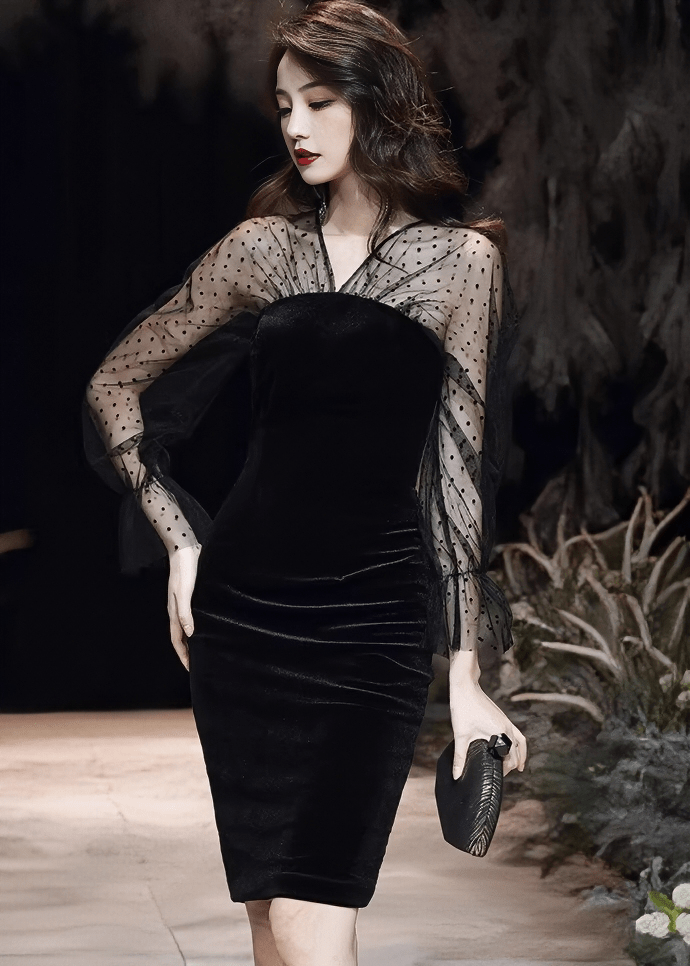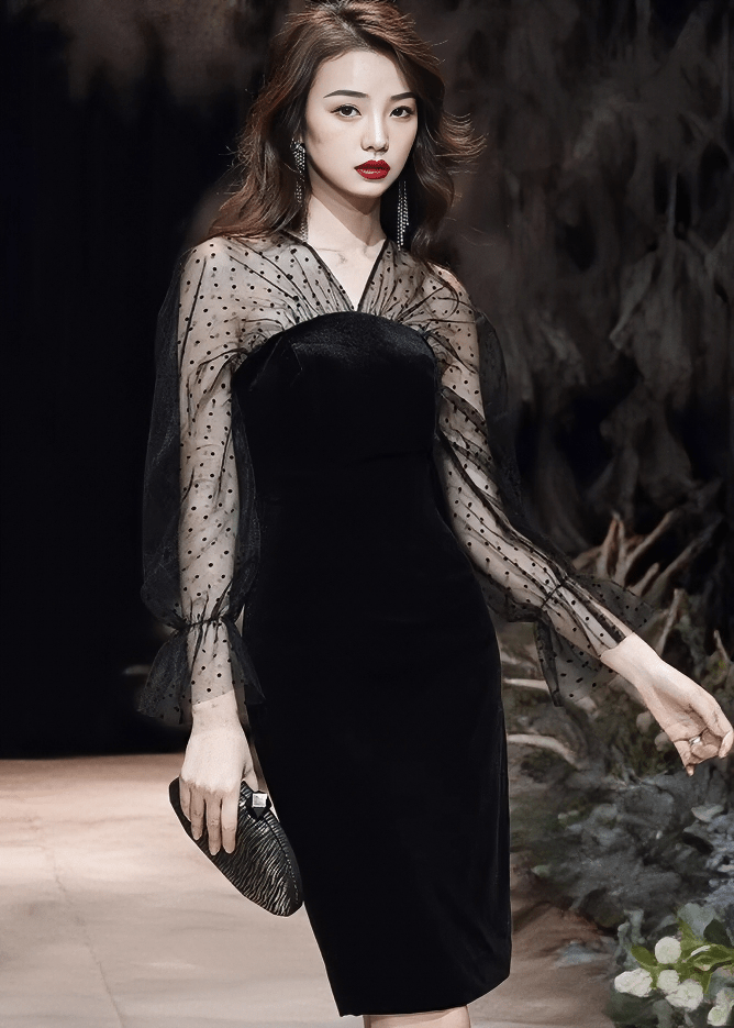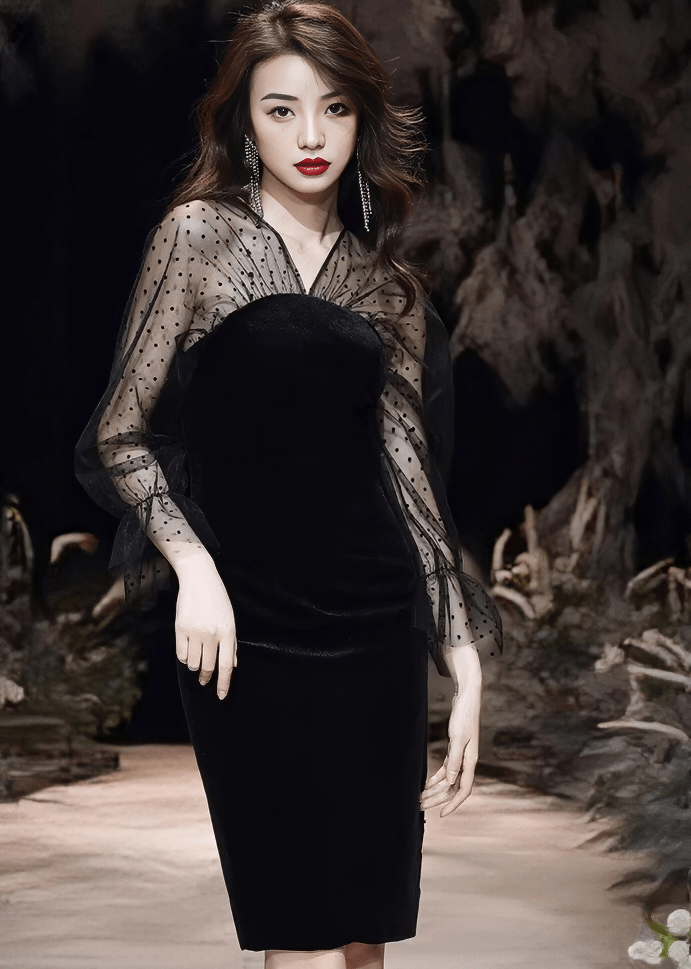 ドットチュールスリーブベルベットドレス - Vera Lumina