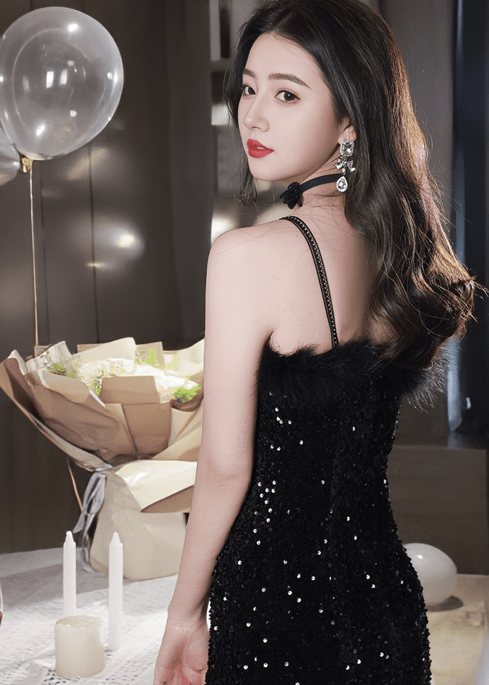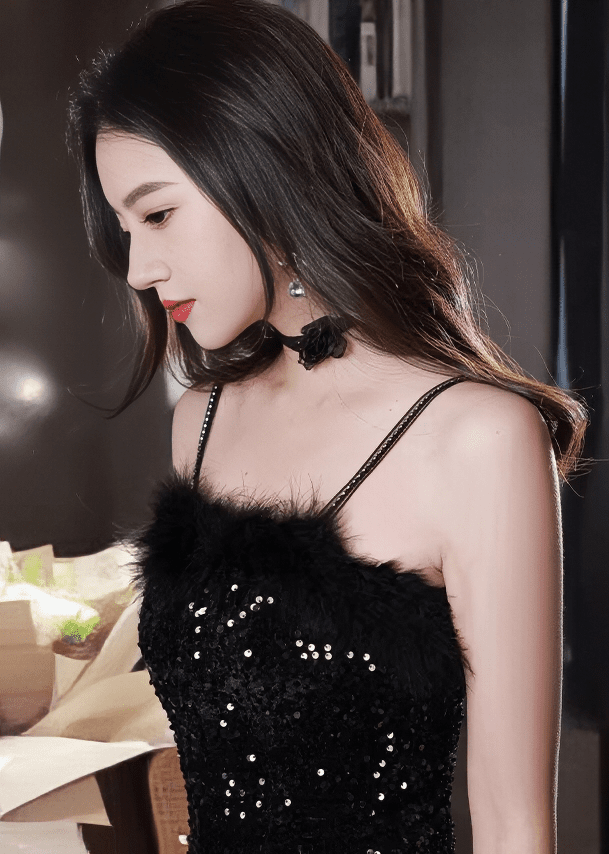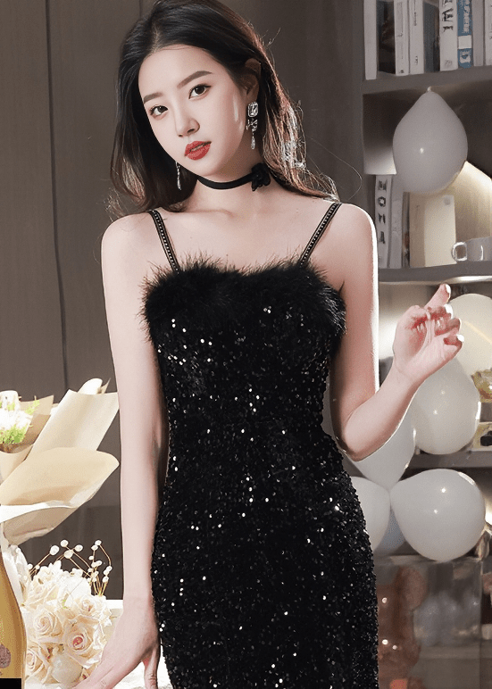 羽毛亮片美人鱼连衣裙