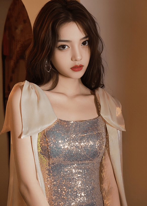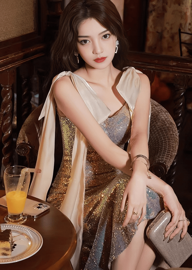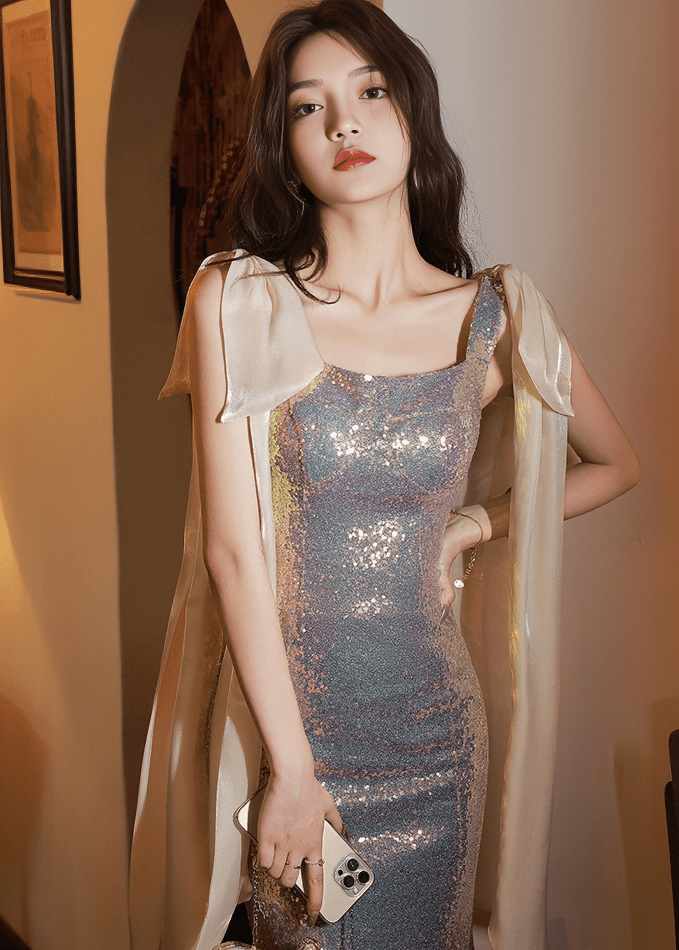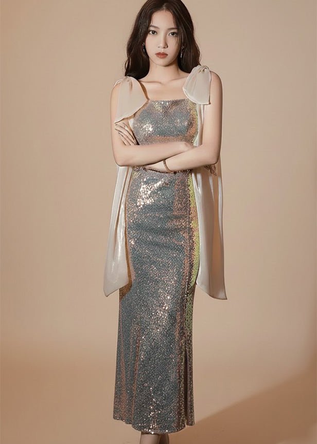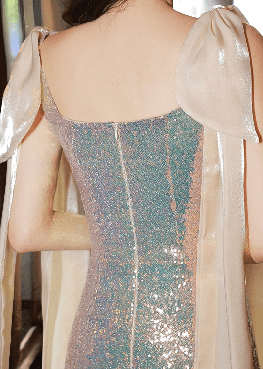 ショルダリボンスパンコールマーメイドドレス - Vera Lumina
