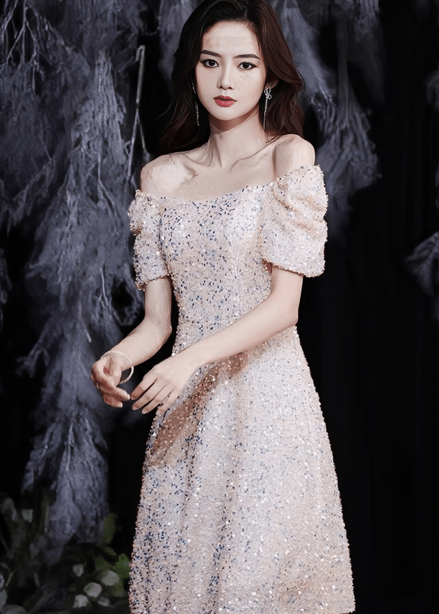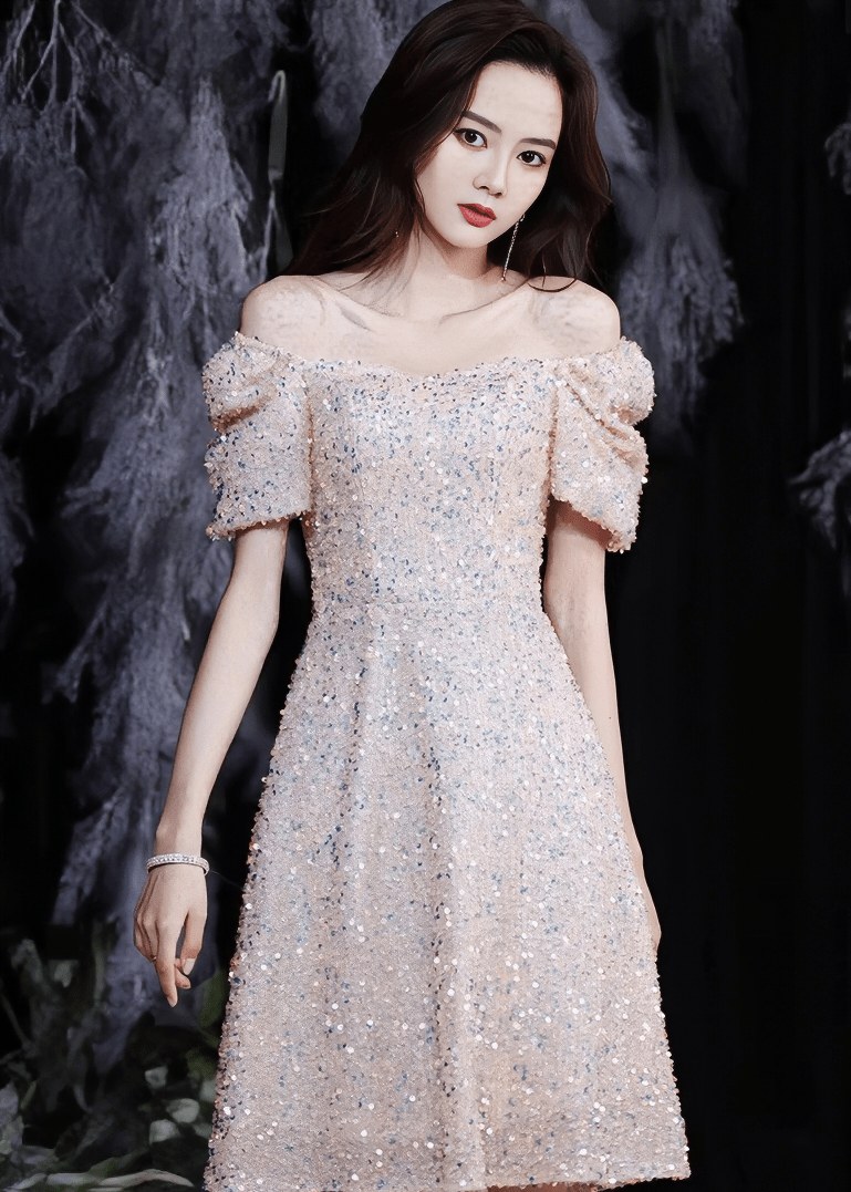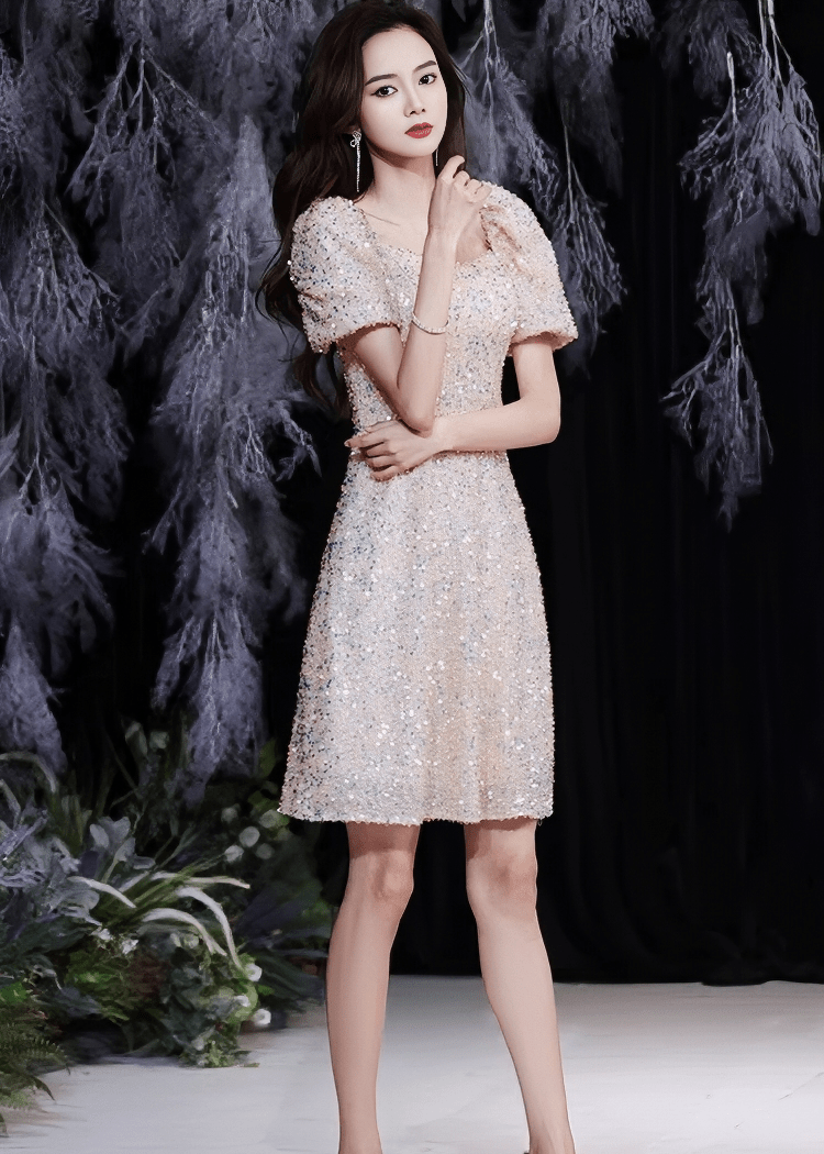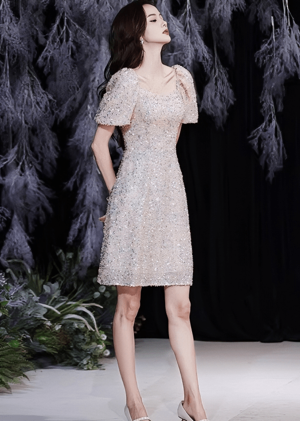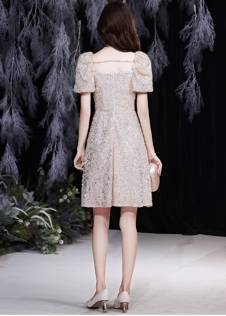 オーロラスパンコールパフスリーブフレアドレス - Vera Lumina