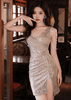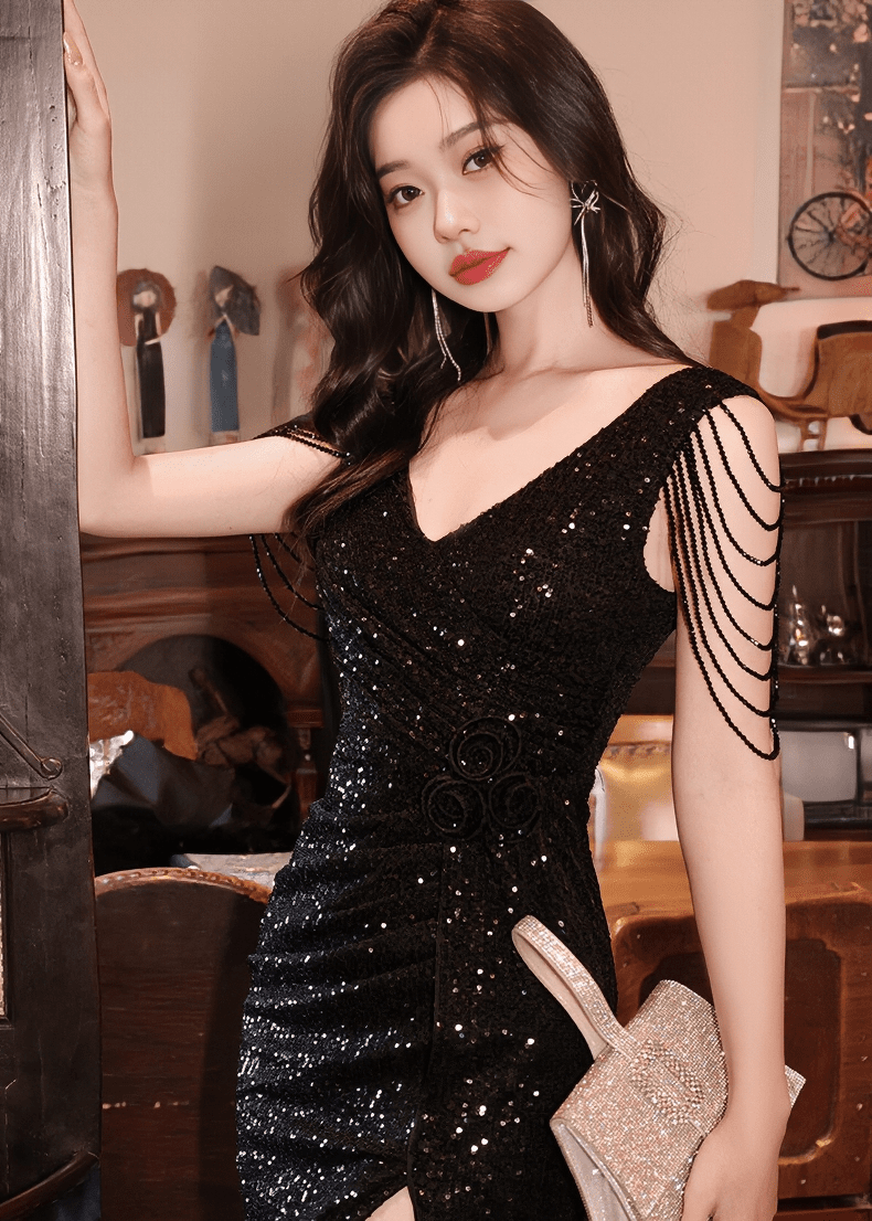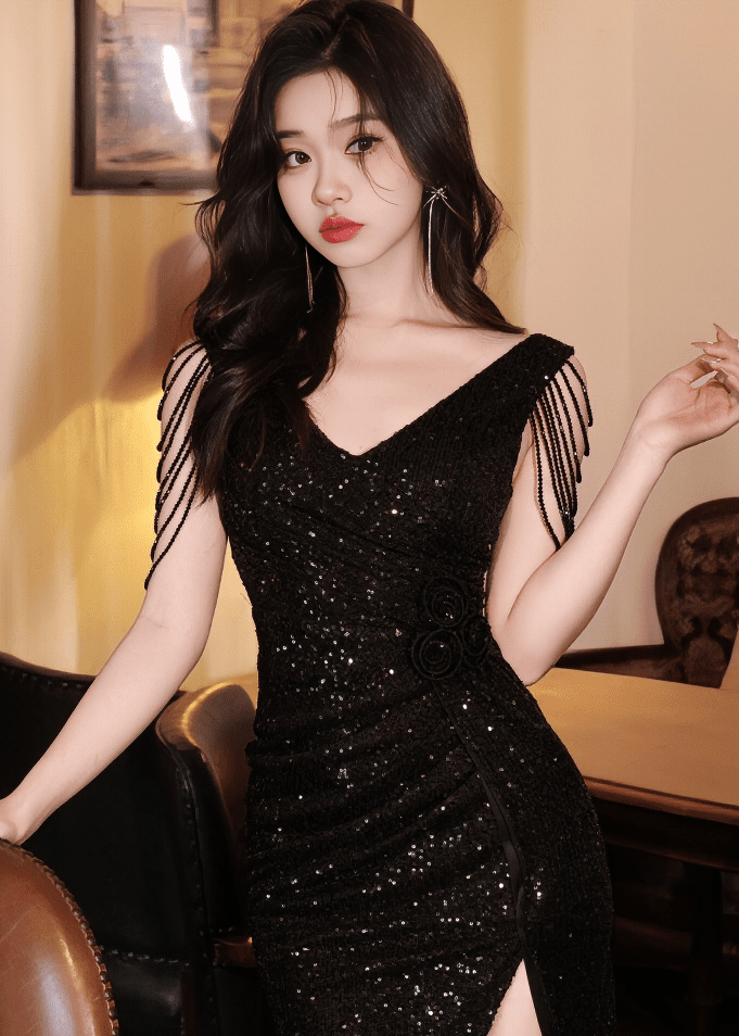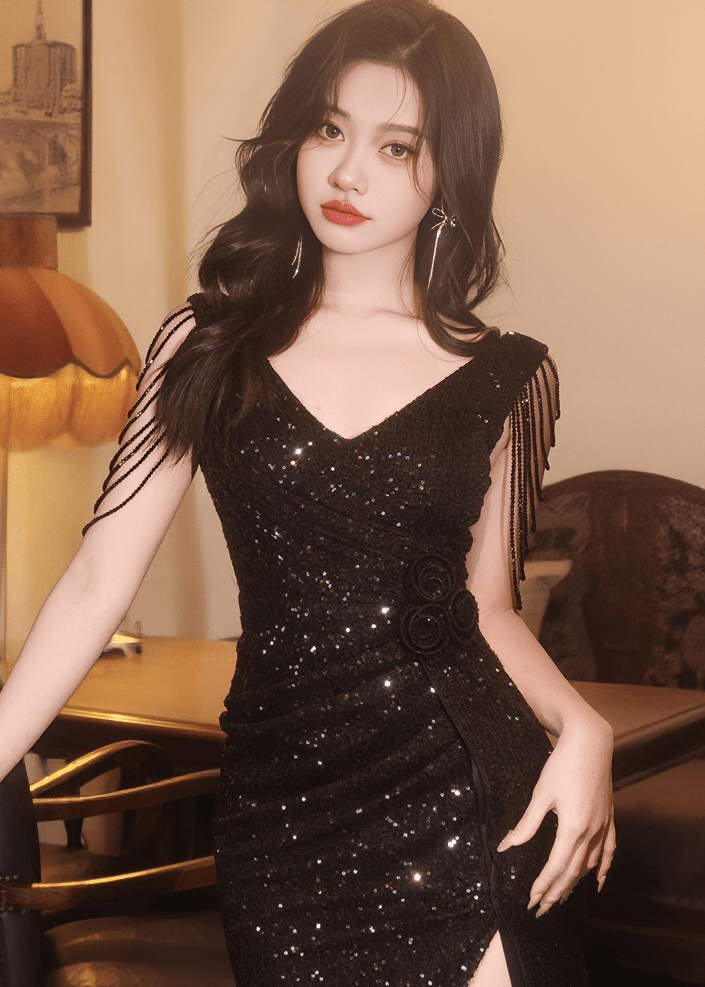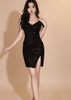 ビジューフリンジスパンコールスリットドレス - Vera Lumina