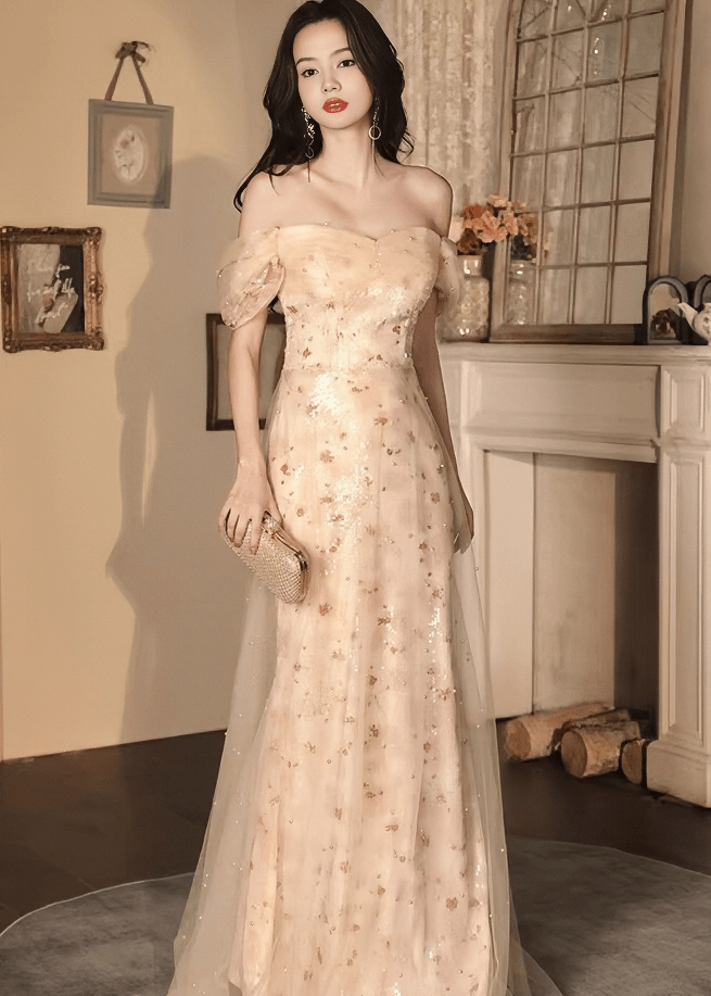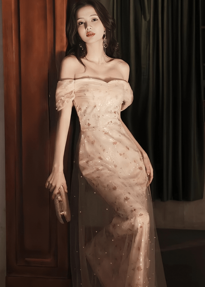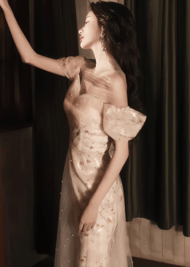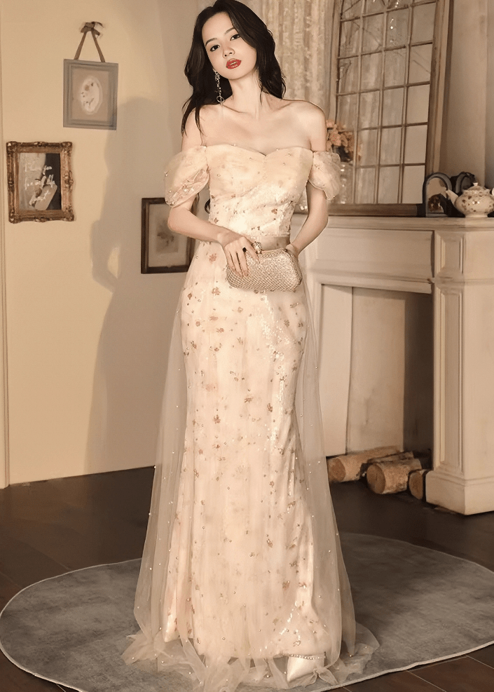 ビジューネックパフマーメイドロングドレス - Vera Lumina