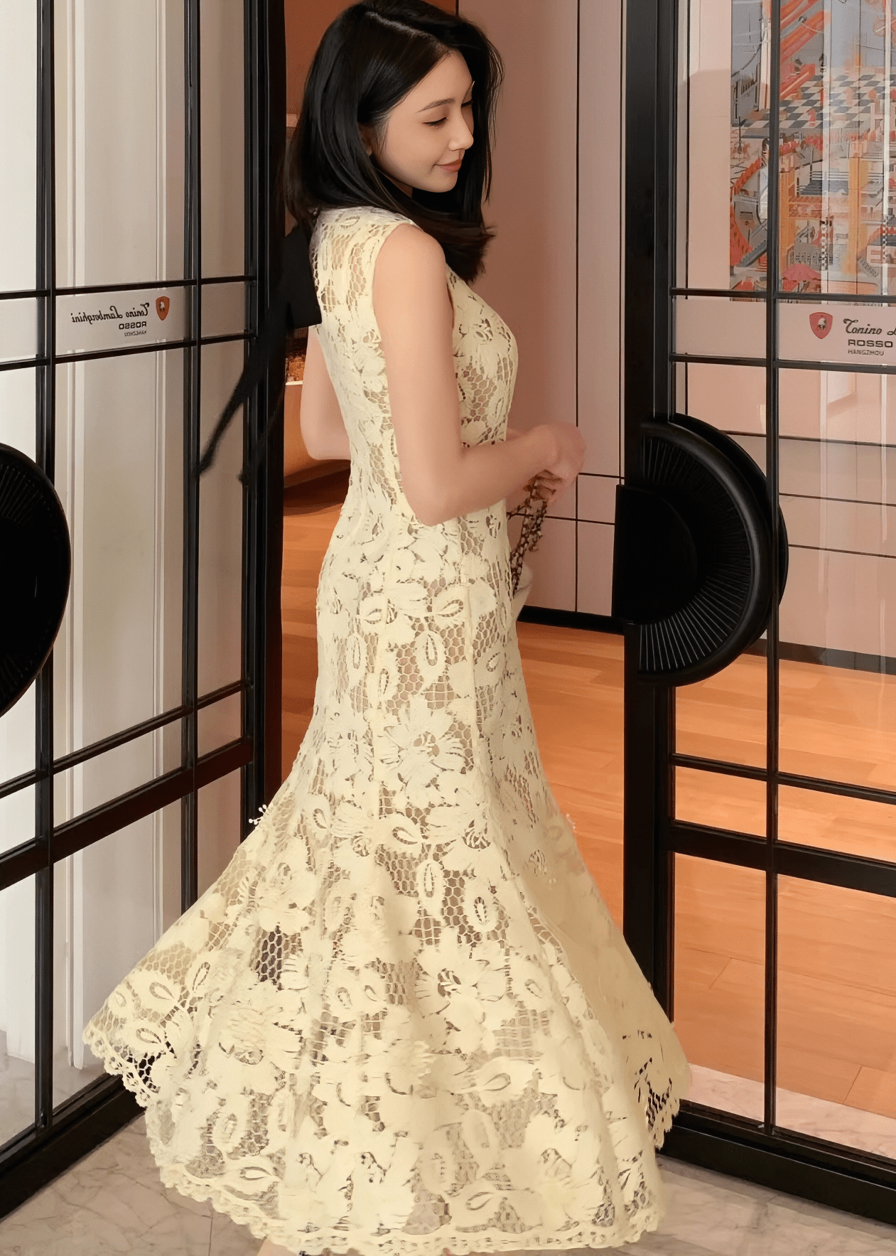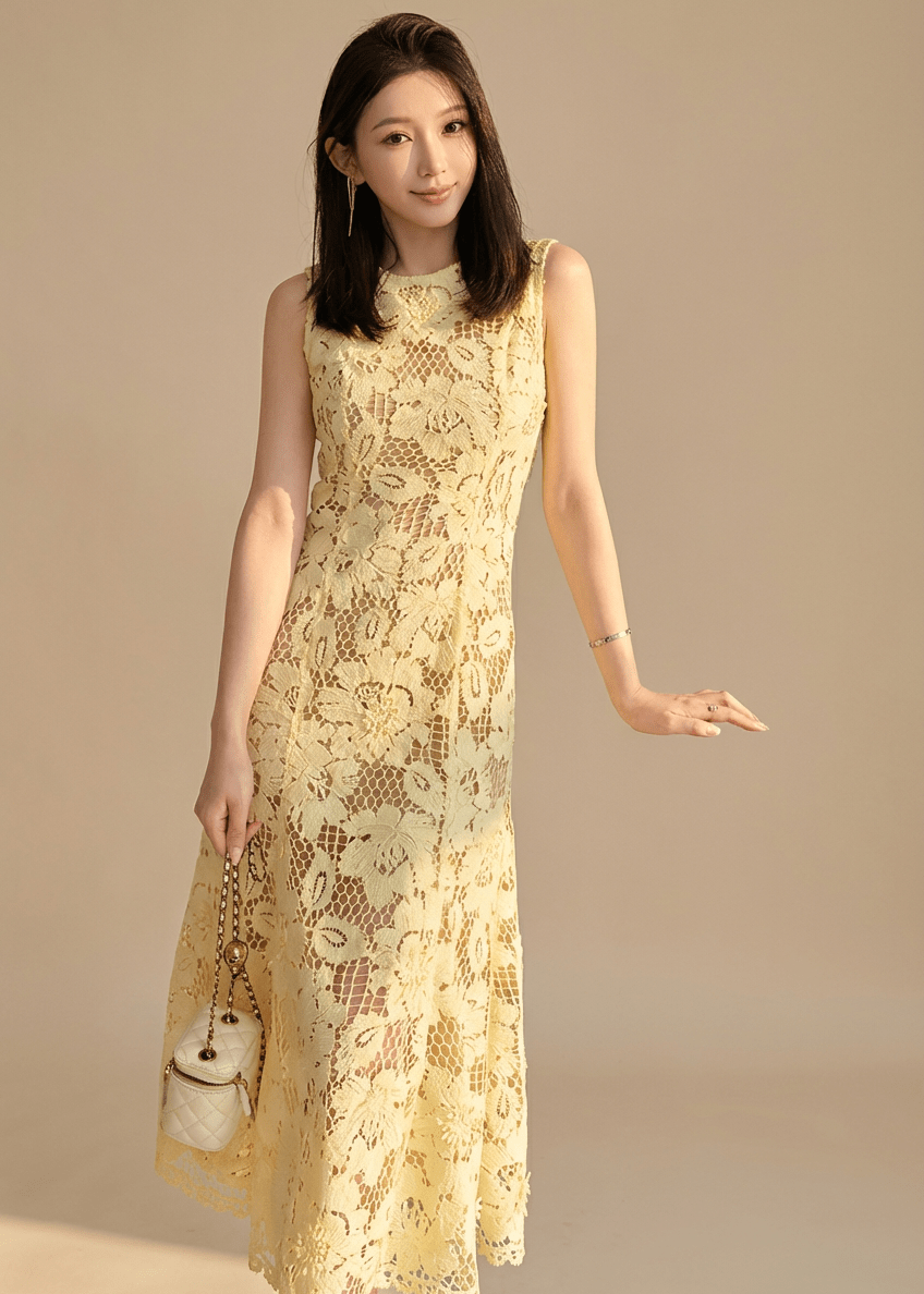シアーフラワーレースマーメイドドレス - Vera Lumina