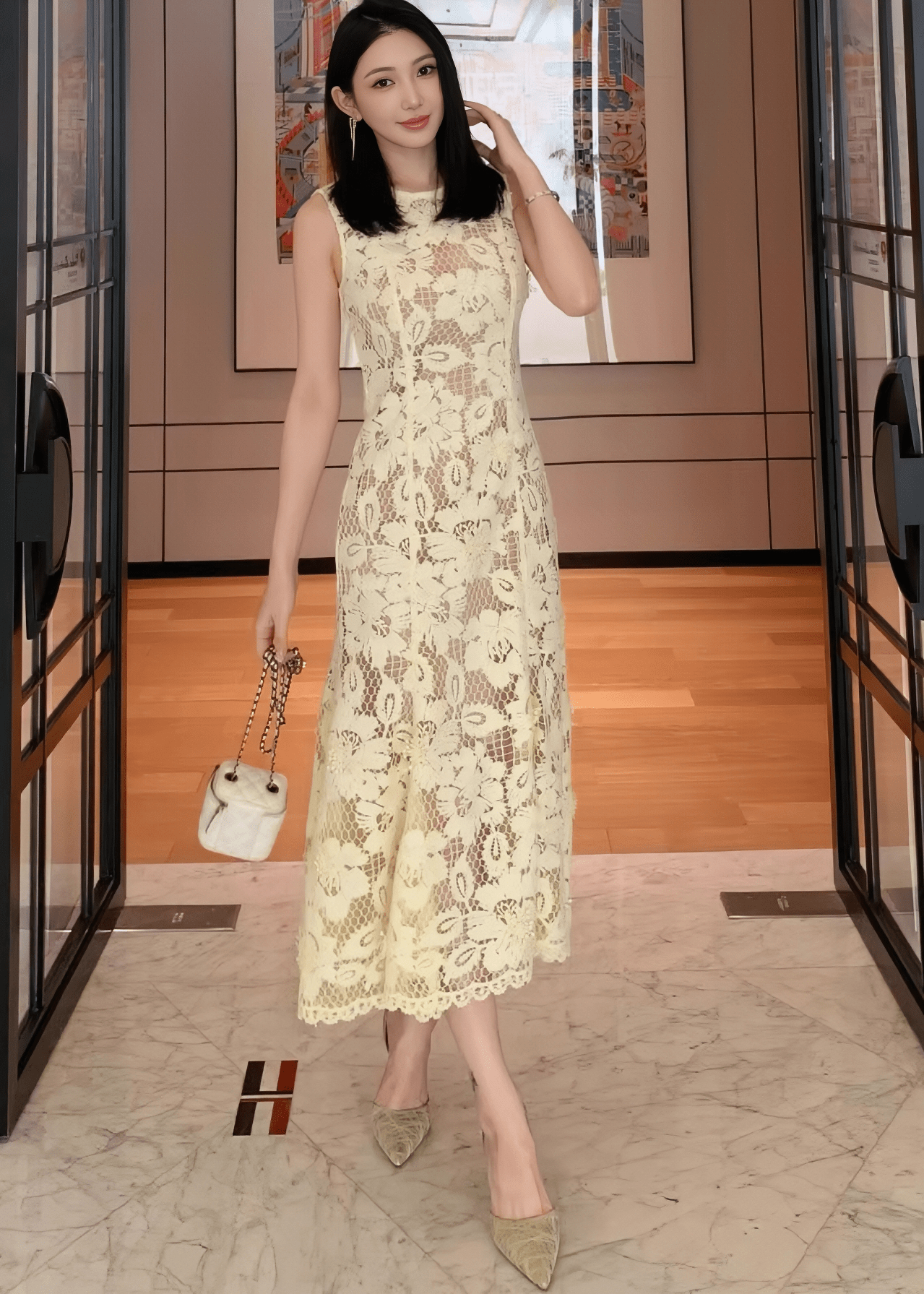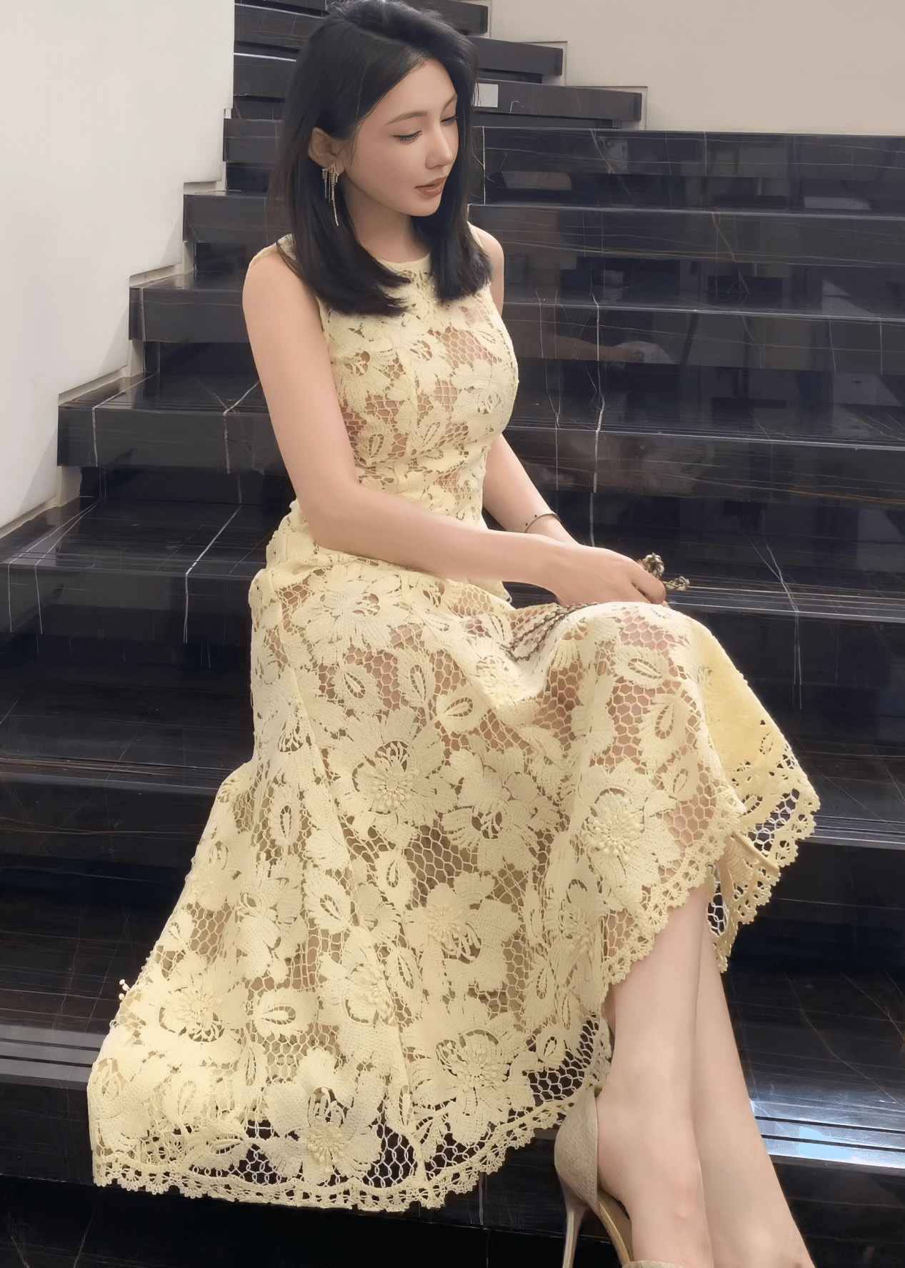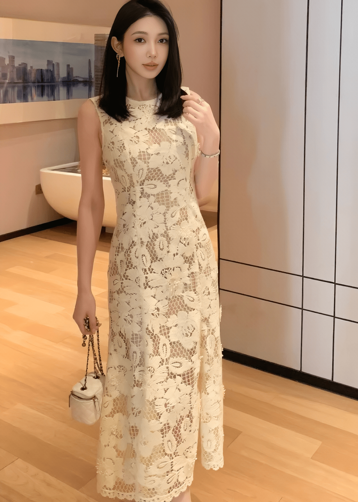 透明花朵蕾丝鱼尾裙
