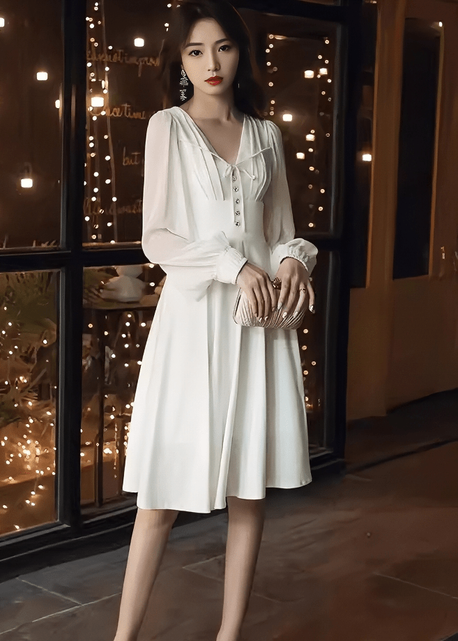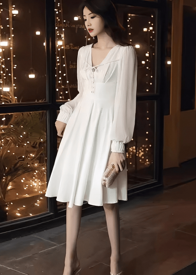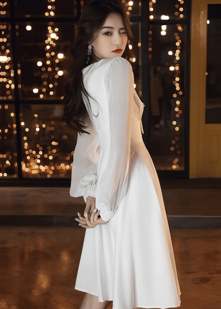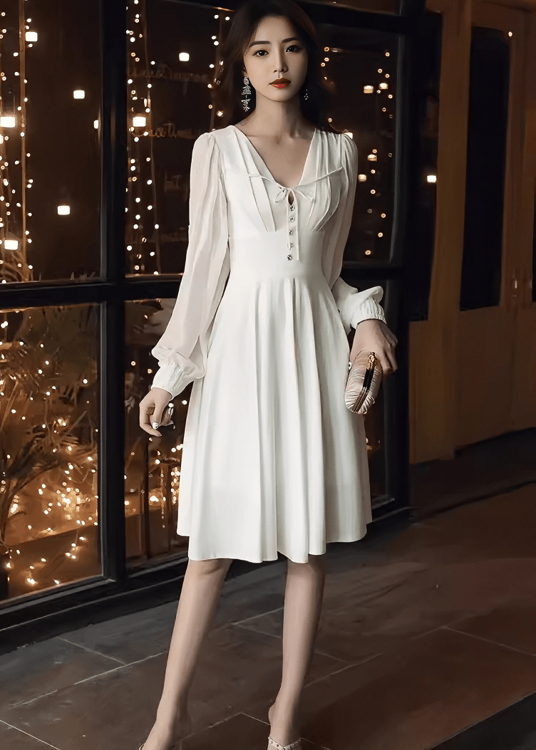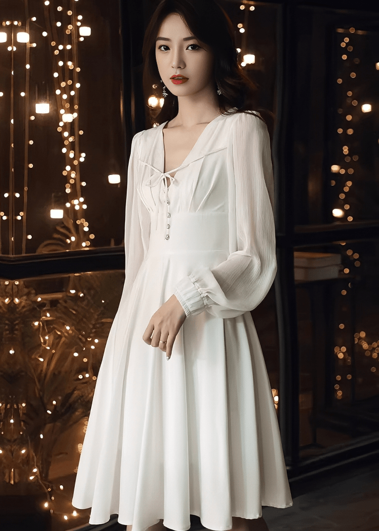 フロントリボンシアーパフスリーブフレアドレス - Vera Lumina