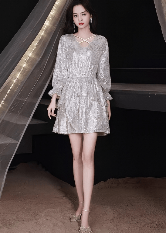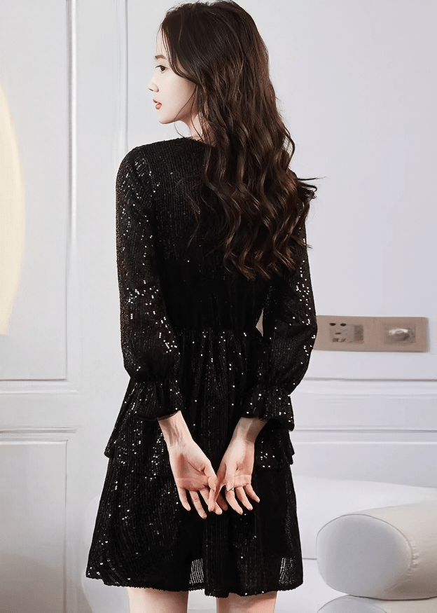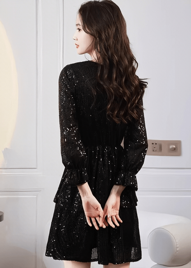 シャイニーティアードフレアミニドレス - Vera Lumina