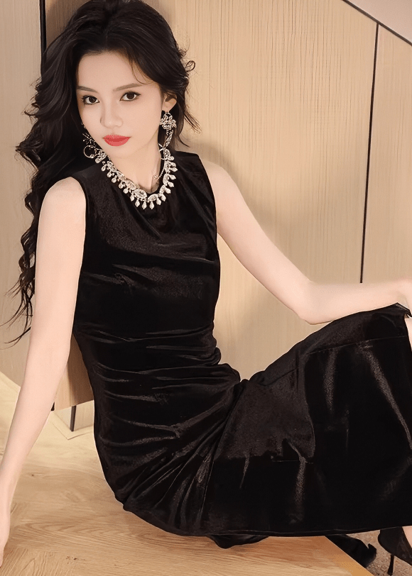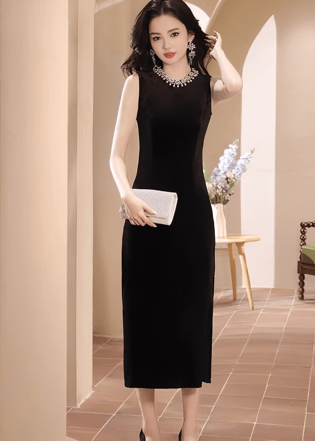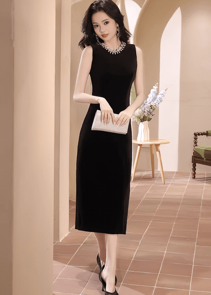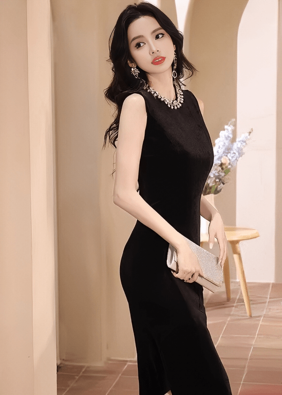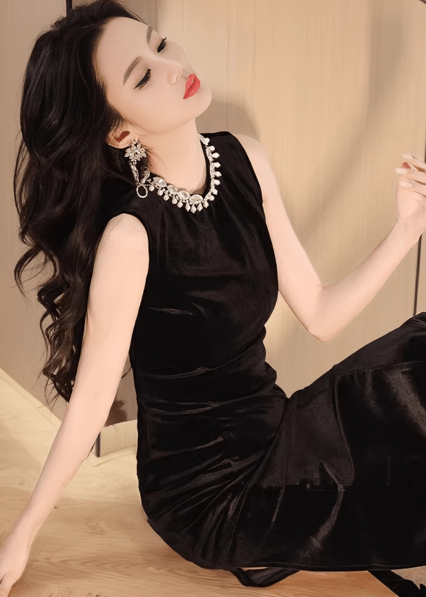 ビジューネックベルベットタイトドレス - Vera Lumina