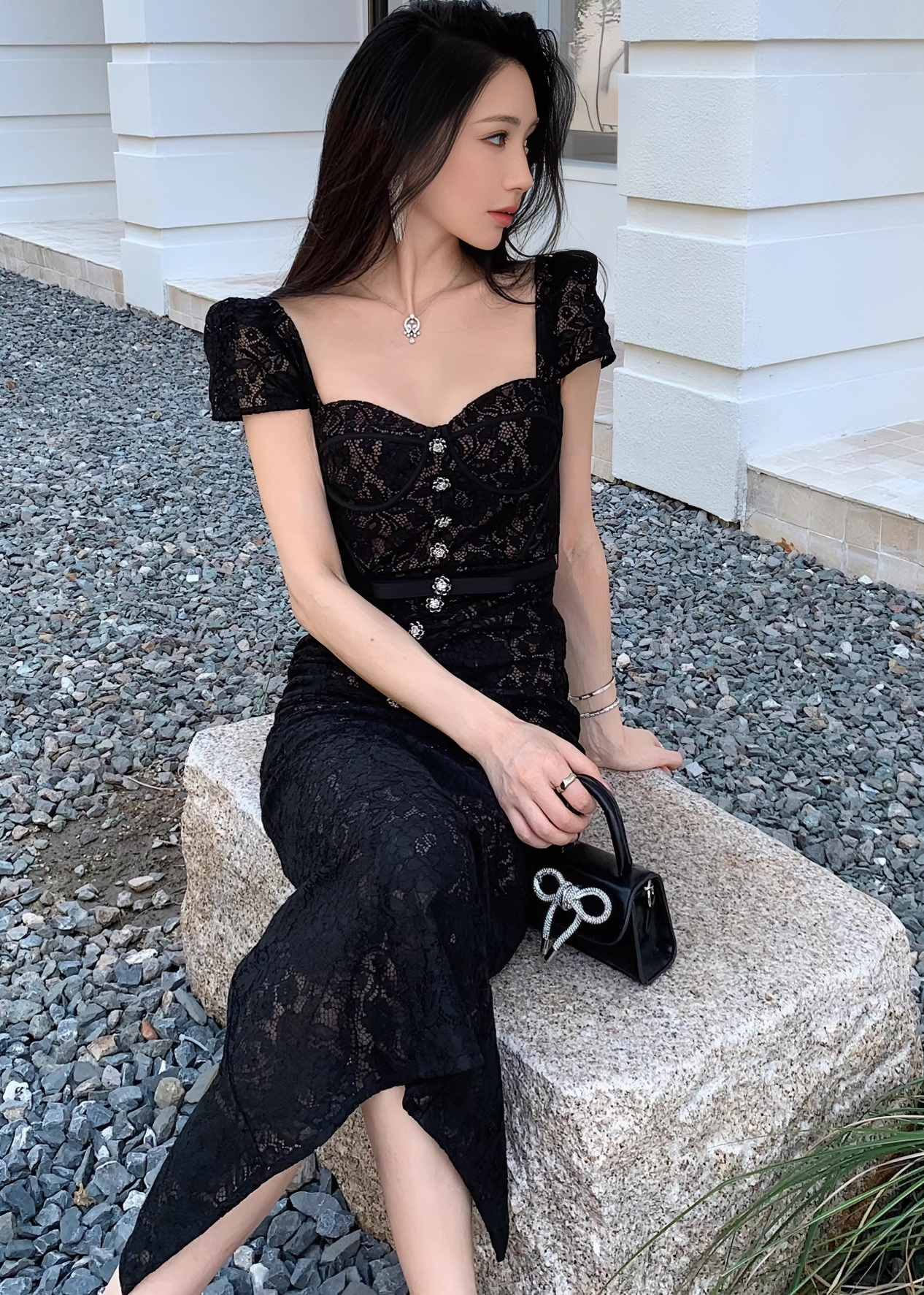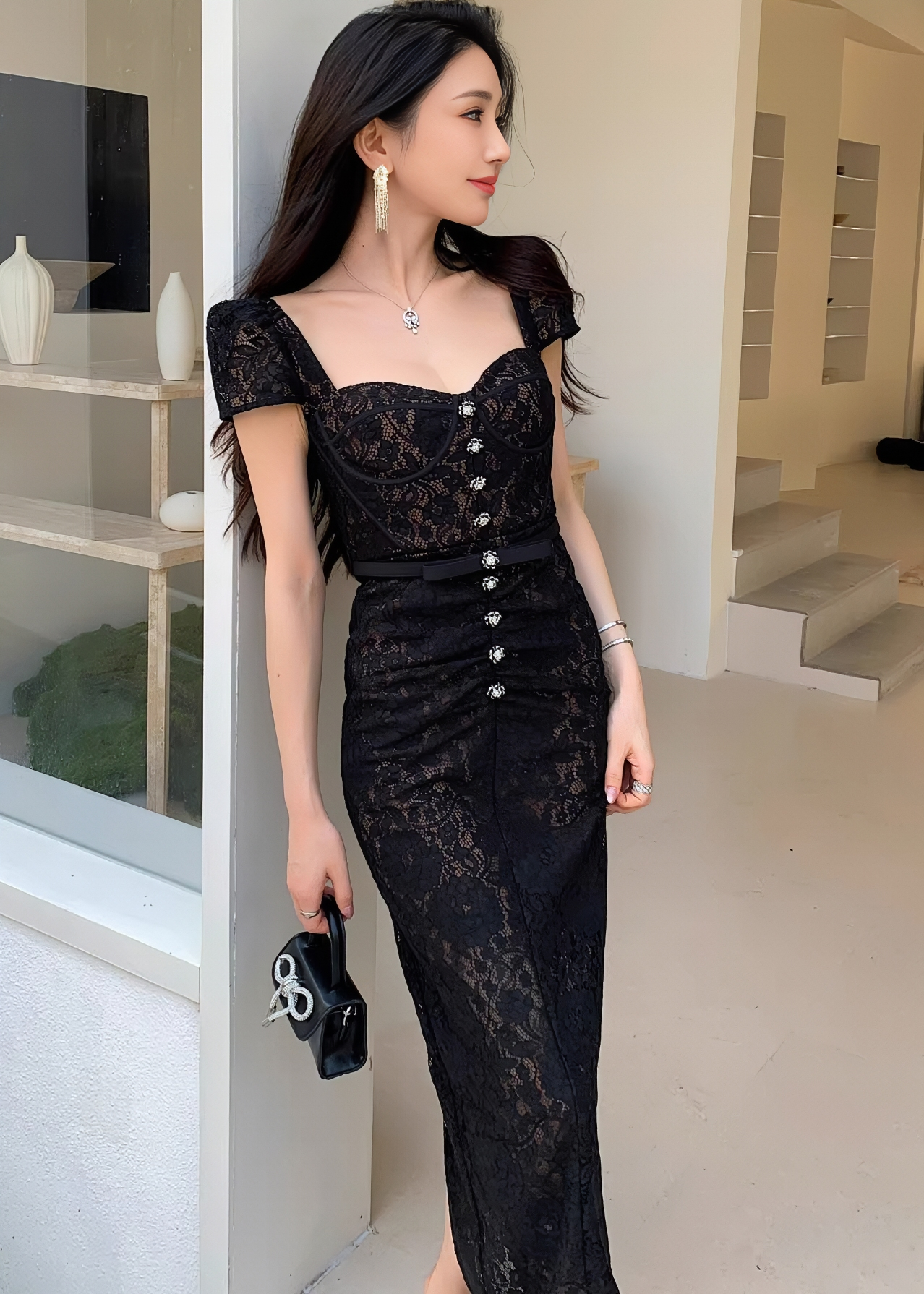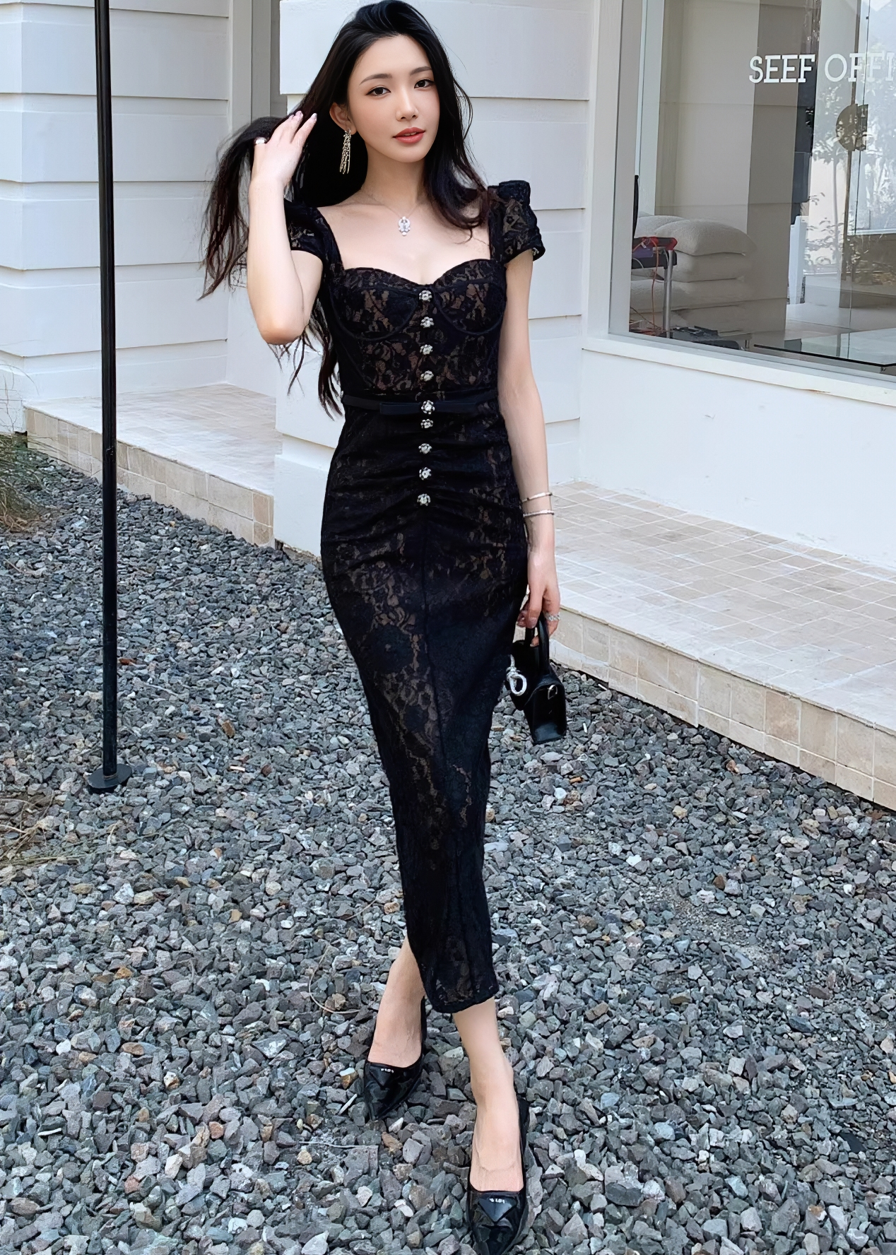 Bijou 紐扣緊身胸衣蕾絲美人魚連身裙